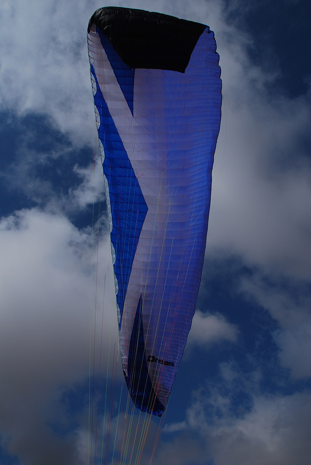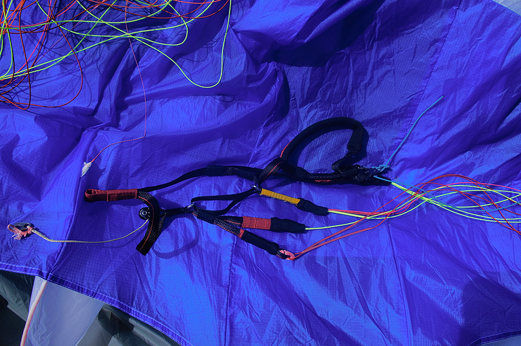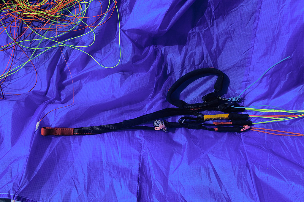 Yes, the 2013 ParAvis is all about high-tech, which even the big names have never dreamed of. I'm not kidding! Let's start with the materials. Renewed gelvenor with the legendary silicone impregnation, which is not afraid of the sun and water and can easily withstand 300-400 hours of rather aggressive use. Previously, this impregnation was only available on fabrics with a density of around 50 grams per square meter - but today's gelvenors have a density of around 45 g/m2. Comparable to Skytex with E85A impregnation and even less, but it's probably a more resourceful solution. The tricky modern gelvenor is only used where it's really needed - namely along the first third of the chord. The rest of the wing is made of lighter fabrics. The leading edge is backed by lines, which are becoming traditional - only in Dream they are thick, rigid and have quite a long length. The internal construction of the wing fits the epithets "complex" and "advanced" quite well. There are additional ribs in the trailing quarter chord, a clever trailing edge riffling system, and a wide ribbon in the trailing chord. But the shape of the Dream's wing is quite traditional, and the family kinship with the Joy is visible at once - the same shape in the plane, the same "ears" shape, and similar twists. Except that the elongation and the number of sections have grown noticeably. As to slinging, ParAvis does not seem to suffer from conservatism. I was very much impressed by the top flatless slings of maximal small diameter, which are more typical for stinging-cutting componenets. The bottom tier of slinging, though, is assembled from quite traditional braided slings, for the resource of which you can not fear. And, finally, the loose ends. We have all the usual features like lightweight softlinks instead of traditional metal hardware, narrow but very strong 15mm ribbon, very thin main loop and very familiar from Rio tandem -newnew brake handles are very thick, soft and comfortable.