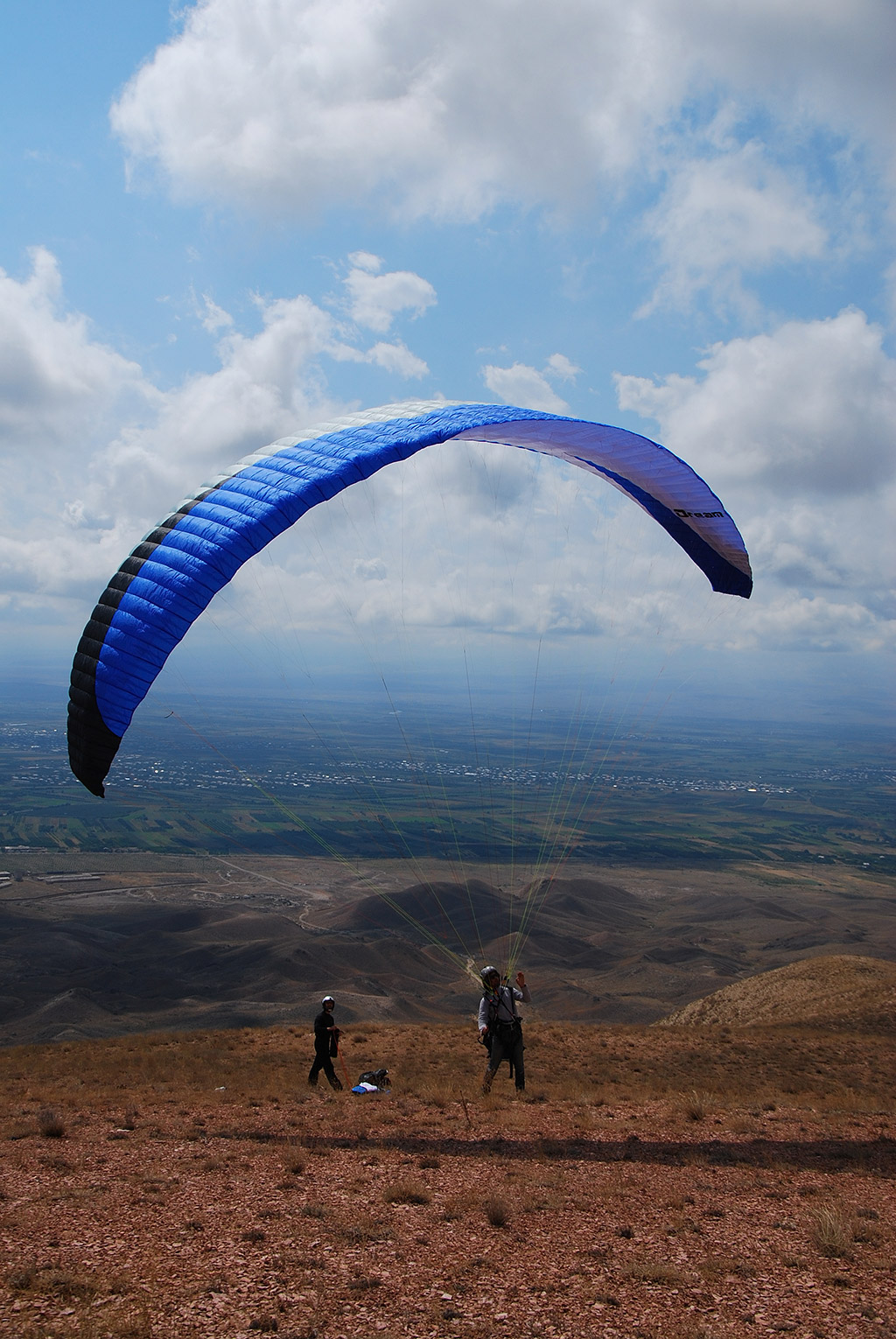 Specifics of Armenia, unfortunately, did not let us to fly with all our heart. But all the starts were the real battles in the strong thermal weather often with a very strong wind. In these difficult conditions Dream showed himself very good. When starting in a strong wind Dream goes over the head surprisingly smoothly and fixes well in the flying position. A slight tendency to overtake is present, but it can be easily fixed with a couple of small brake strokes. The mistakes on roll are easy to forgive, and that is mainly because of the quite relaxed behaviour of this wing at the start. If you make a mistake, you always have time to correct it.