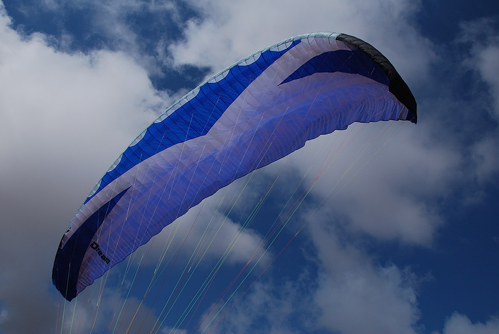 Comfortable and informative. Peculiar. Up to the border of hazardous flight modes, the Dream behaves so calmly that, at first, there is even a question, whether it is a "performance"... During a turbulence, you can safely use the first step of gas pedal - the aerodynamics of the vehicle is not spoiled, and its behavior does not become angry. Naturally, it is necessary to steer at high speed not with brakes, but with rear rows - Drim has comfortable enough for this, though they do not have fancy balls, knobs and other clamps. The internal construction of the Dream provides it with decent form stability - unlike more elongated and sharper in its behavior "performances", the Dream holds its form rigidly and is not inclined to wiggle in its swing or flap its "ears" when dangling. The pitch and roll damping of the Dream is above average, and it is quite difficult to navigate by small movements of the wing above the head. That leaves airspeed changes, which are quite informative, and brake loading, which varies slightly when flying in thermals. In general, the comfort-informative balance in the Dream is clearly shifted in favor of comfort. The situation changes only at the very edge of the fold or in "combat" folds. At maximum speed the lines in the leading edge take the load - as well as when flying on the Joy, there may be the situation when the "forehead" areas between the ribs get crushed inside, but the machine is still flying calmly, without thinking about folding. But if the folding does occur, the Dream suddenly "recalls" its membership in the EN C class and comes out of the mode not so friendly. The combination of the Olympic calmness in normal flight and the typical "performance" nature of the exit from the folding mode may be unexpected for pilots used to simpler techniques, it is better to know about this feature of the Dream in advance.
