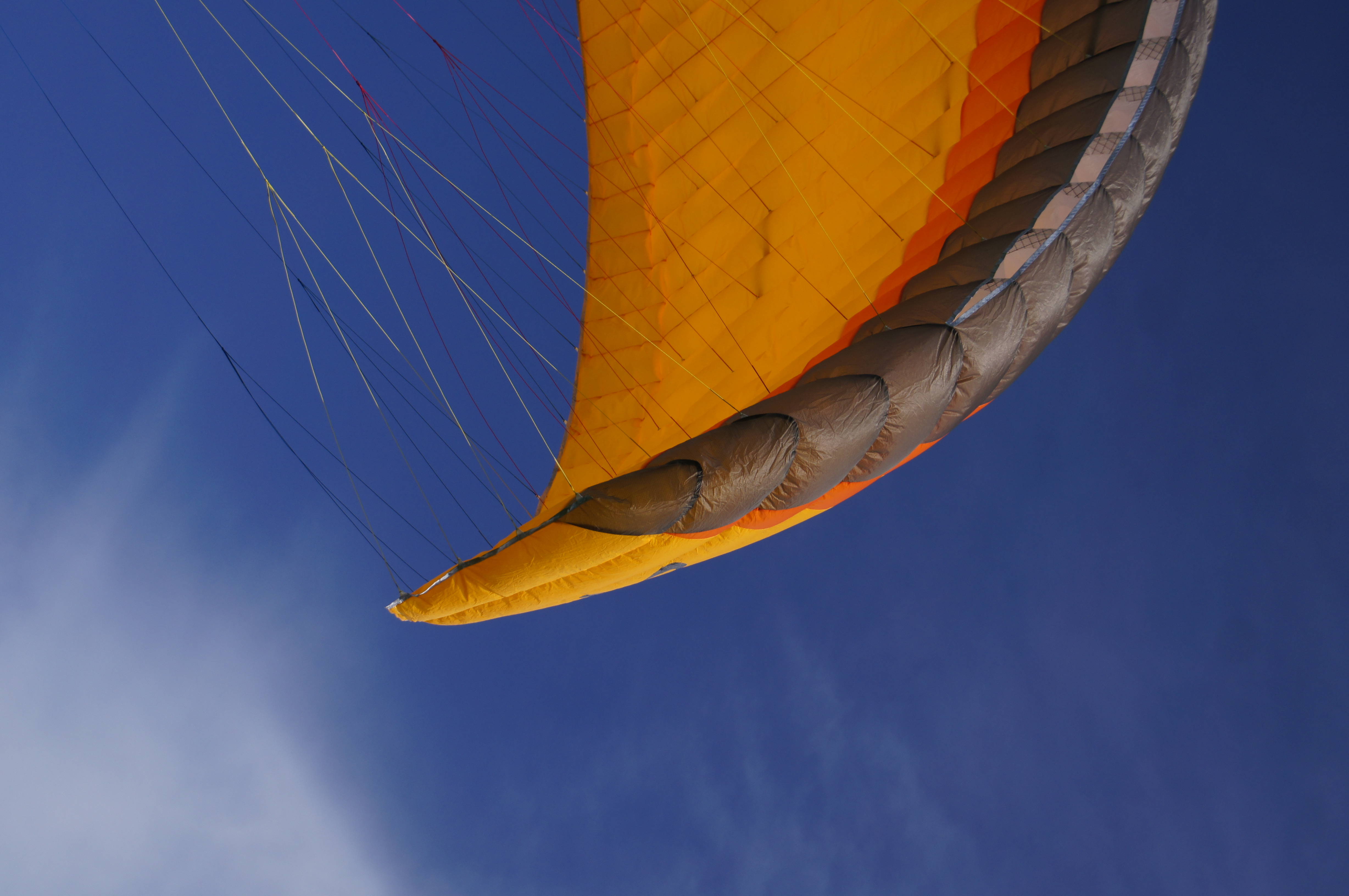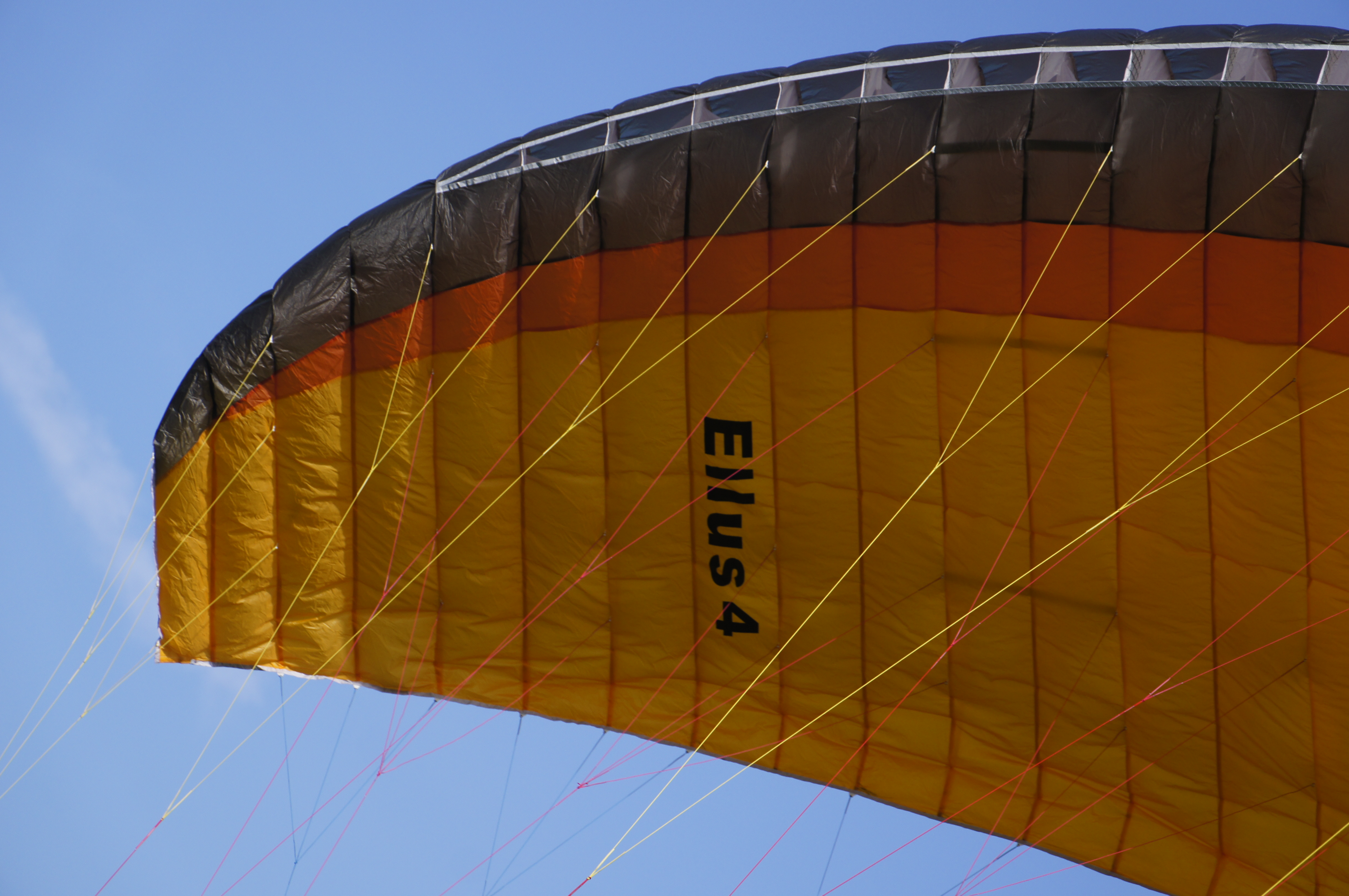 One of my long-time flying friends, examining the Ellus up close, aptly and succinctly described its construction by the word "semi-honest". For many years SOL was popular in Russia due to the abundant use of gelvenor and other mega-resource materials and a healthy conservatism in design, which ensured the easy-going nature of the wings. SOL is more or less faithful to this approach even now. The legendary gelvenor has been replaced by a lighter 40g/m2 WTX fabric. Yes, it's not gelvenor, but against the background of trendy "paper" fabrics with the density of about 30 g/m2 WTX looks very decent, providing the wings with definitely better durability. The wires in the leading edge are present, but very thin and short, and only on every second section. These lines have practically no influence on the glider's flight behavior, but make it easier to fill the wing with air and to start. The shape of the wing is rather conservative, which is pleasantly referring to the previous epoch of paragliding. No aggressiveness, no closed sections, classical trailing-edge flaps, little elongation - 5.29. The slings on all tiers are braided, more resourceful than the fashionable "braidless". The free ends are with a pretension to be trendy, narrow, but unexpectedly soft. The sewing and the quality of workmanship are traditionally sound, without criticism.