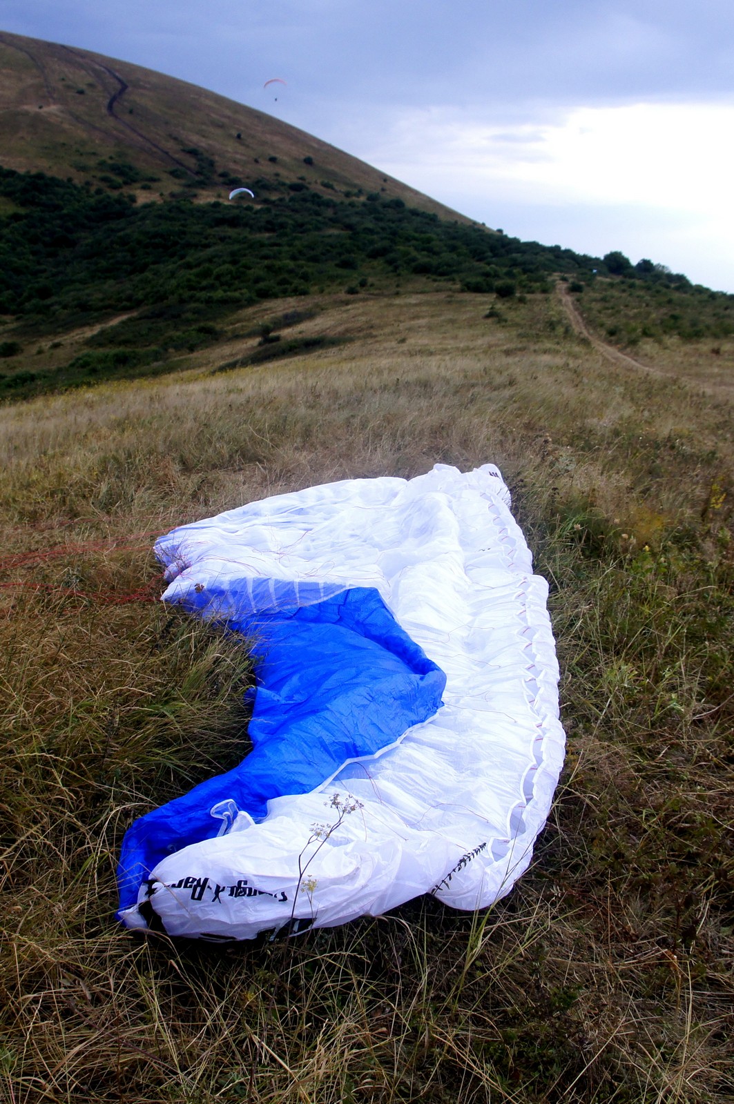 Good by EN C class standards, close to the benchmark for EN D. Breaking through the front row before folding is not too physically demanding, the size of the fold is easily set by the depth and vigor of the A-row retraction. Folding instantly makes "Tranga" roll to about 40-45 degrees, and only then develops full-fledged oblique roll of considerable amplitude for EN C - up to about 60 degrees. With full passivity of the pilot the plane opens surprisingly smoothly, but unhurriedly, having time to turn 90 degrees and lose 15-20 meters of altitude. The slightest intervention of the pilot in the form of transferring weight to the uncomplicated side or giving the brake from the same side speeds up the unfolding by several times.