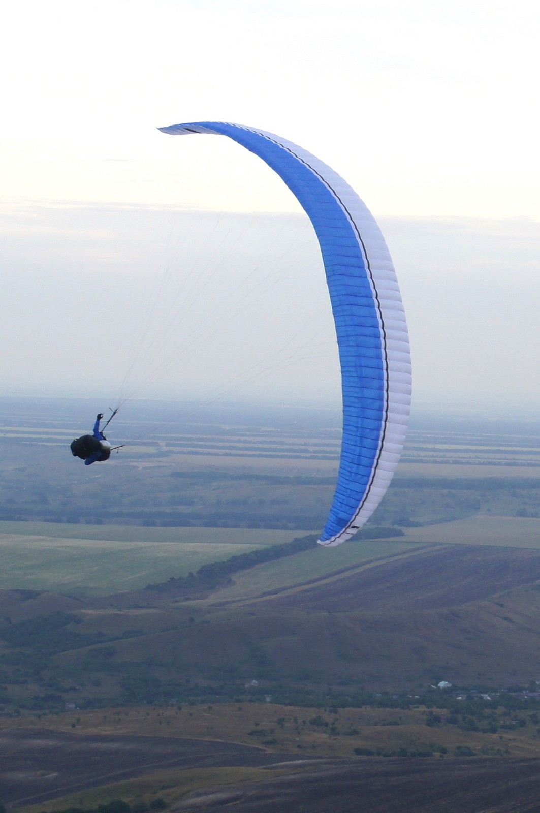 Comfort. There is more information than comfort - but, strangely enough, there is quite a lot of comfort for such ambitious product. Comfort is expressed, first of all, in the monolithic Tranga, unexpected for a lengthening of about 7: it was surprisingly difficult to make this wing flap its "ears". Again, I will intentionally compare the Tranga with some EN Ds. The already mentioned above Sky Country Space likes to "flap its ears" on and off occasion, and even the reference Mantra M6 behaves noticeably more nervously. By the standards of EN C class the comfort of the X-Race is surprisingly high. The impressive resistance to folding makes a weighty contribution to the general feeling of comfort. I tried many times to drive the "Tranga" to the turn of the leading edge, roughly leaving powerful wing-overs - the slides and offloading turned out impressive, but the machine never wanted to fold. Our "Tranga" reacts very calmly to the slight bumping and "droppings" of the paragliders flying by - of course, the wing makes some movements, sometimes even quite sharp, but after some fraction of a second the sailplanein some fractions of a second the machine flies again as if nothing had happened, without any noticeable roll in pitch or, all the more so, without leaving the planned trajectory. In roll, the vehicle tends to wiggle a little more, but these movements are more informative than uncomfortable. In a more serious bump, the situation changes somewhat, and powerful load changes at the free ends, perceived as elastic but powerful shocks to the suspension, come to the fore. But we should give "Tranga" its due - despite the power of such strikes, they do not lead to anything criminal (except that the machine begins to "wag its ears" a little), and the energy of each strike is somehow very cleverly, quickly and smoothly dissipated, spreading over the whole wing.