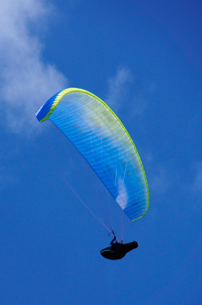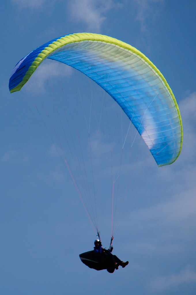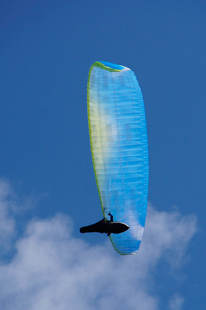 С углом планирования, аэродинамическими качеством и прочими глайдами у Комета дело обстоит не хуже. Сильный встречный ветер, который обычно «придавливает» к горе технику класса «интермедиат», для Комета не становится ограничением — высокая скорость нашего подопытного приятно сочетается с неожиданно высоким глайдом, позволяя резво убегать от горы против ветра без сильной потери высоты. Может, Комету и не по силам превзойти некоторые аппараты, относящиеся к EN B сугубо формально (в первую очередь речь о GIN Carrera), но такое сравнение некорректно. Забегая вперёд, скажу, что по комфорту и пассивной безопасности Комет пусть с некоторым трудом, но укладывается в русло философии класса «интермедиат». Значит, сравнивать его надо не с Каррерой, а с изделиями вроде Skywalk Chili 3 или Swing Mistral 7 — и при таком сравнении Комет оказывается практически вне конкуренции.