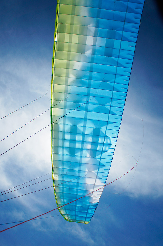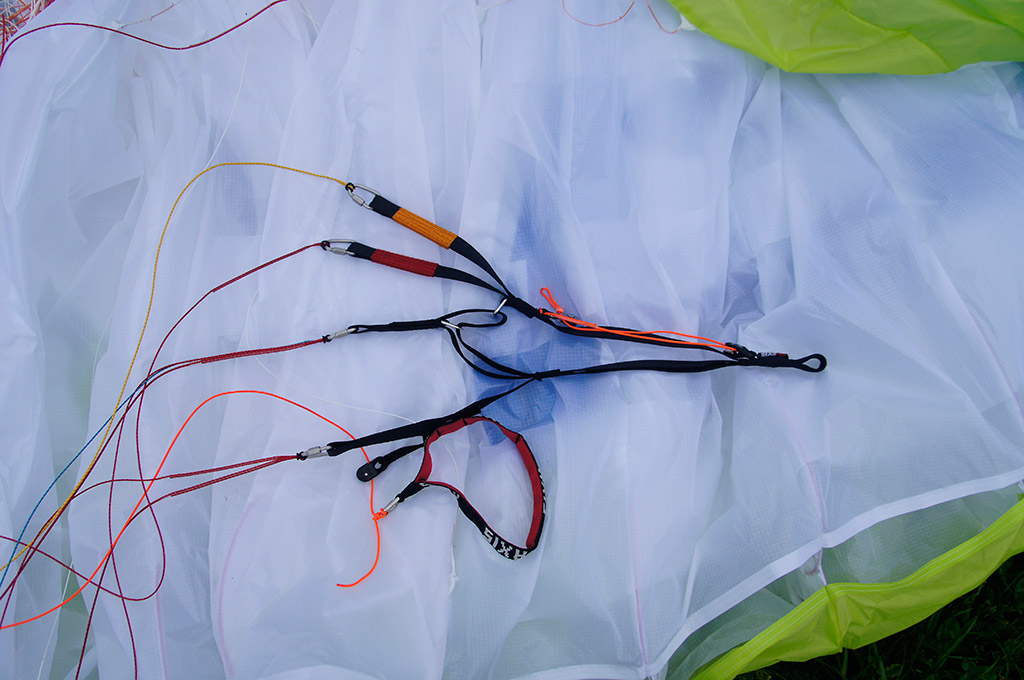 В процессе тестирования обе рулевые стропы были укорочены на 5 см. В некоторых случаях это довольно заметно изменило поведение крыла.