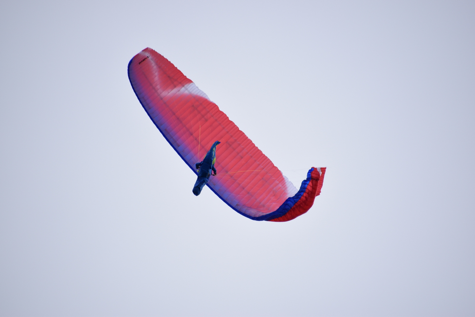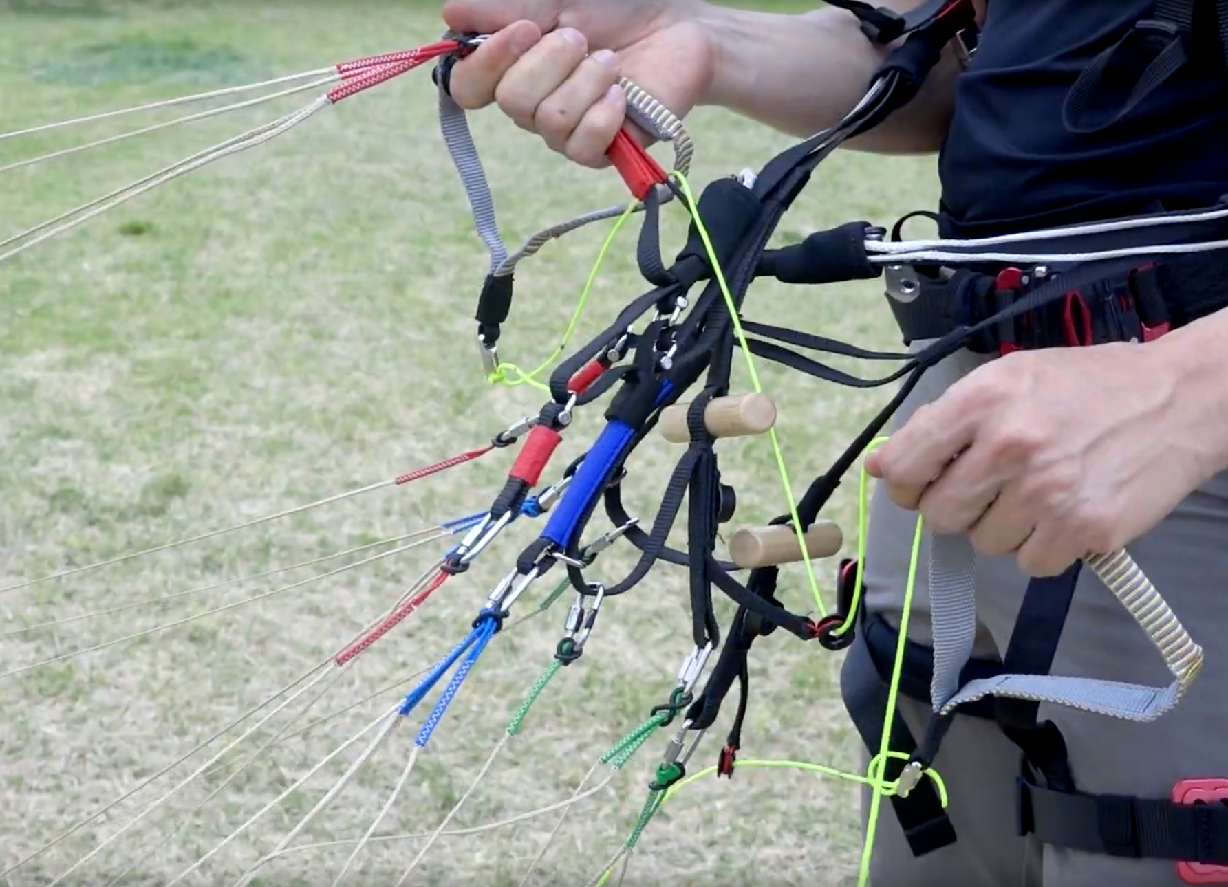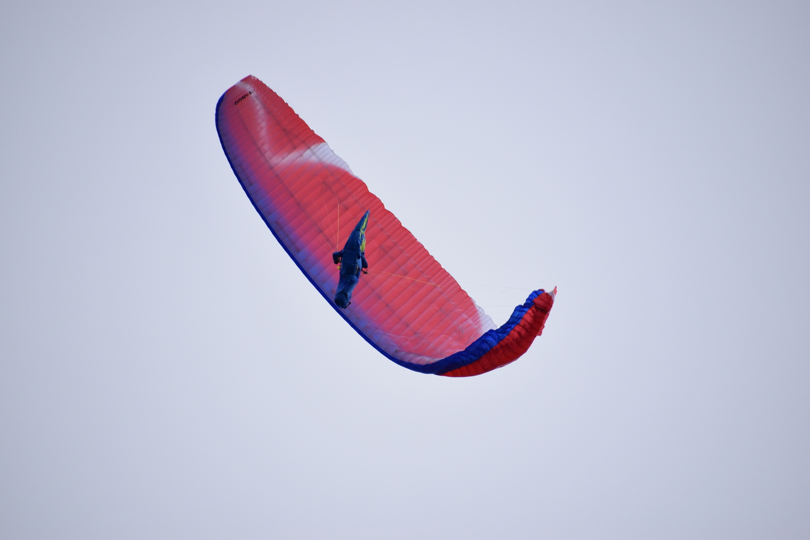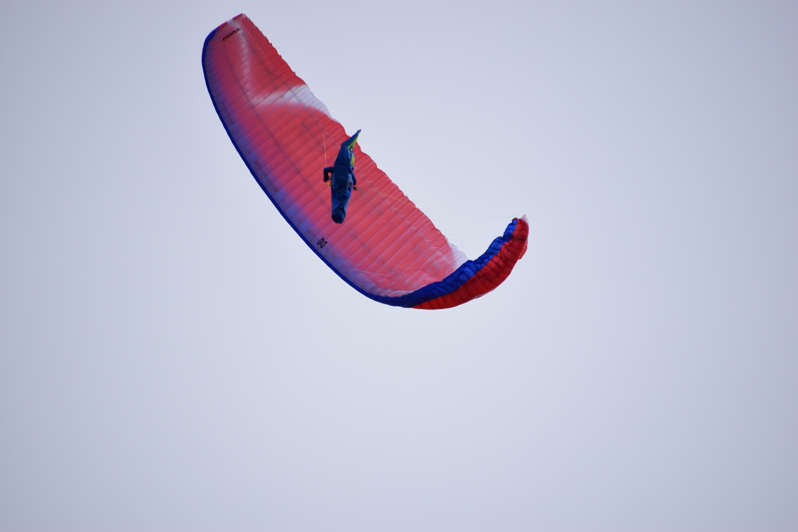 Отдельно стоит остановиться на управлении задними рядами в полёте на акселераторе. Напомню, что кинематика концов у Танго весьма нетривиальна — работа бобышками приводит к изменению круток, при этом сильно нагружаются внешние стропы B-ряда. Возможно, именно поэтому реакции Танго на работу задними рядами приближены к таковым у двухрядных крыльев. Усилие на бобышках заметно меньше, чем в среднем у трёхрядок, а эффективность работы задними рядами заслуживает осторожной похвалы. Пересаживаться с Танго на что-нибудь двухрядное будет не слишком сложно — навыки работы задними рядами, наработанные на Танго, здорово пригодятся и почти не потребуют переучивания. Отлично!