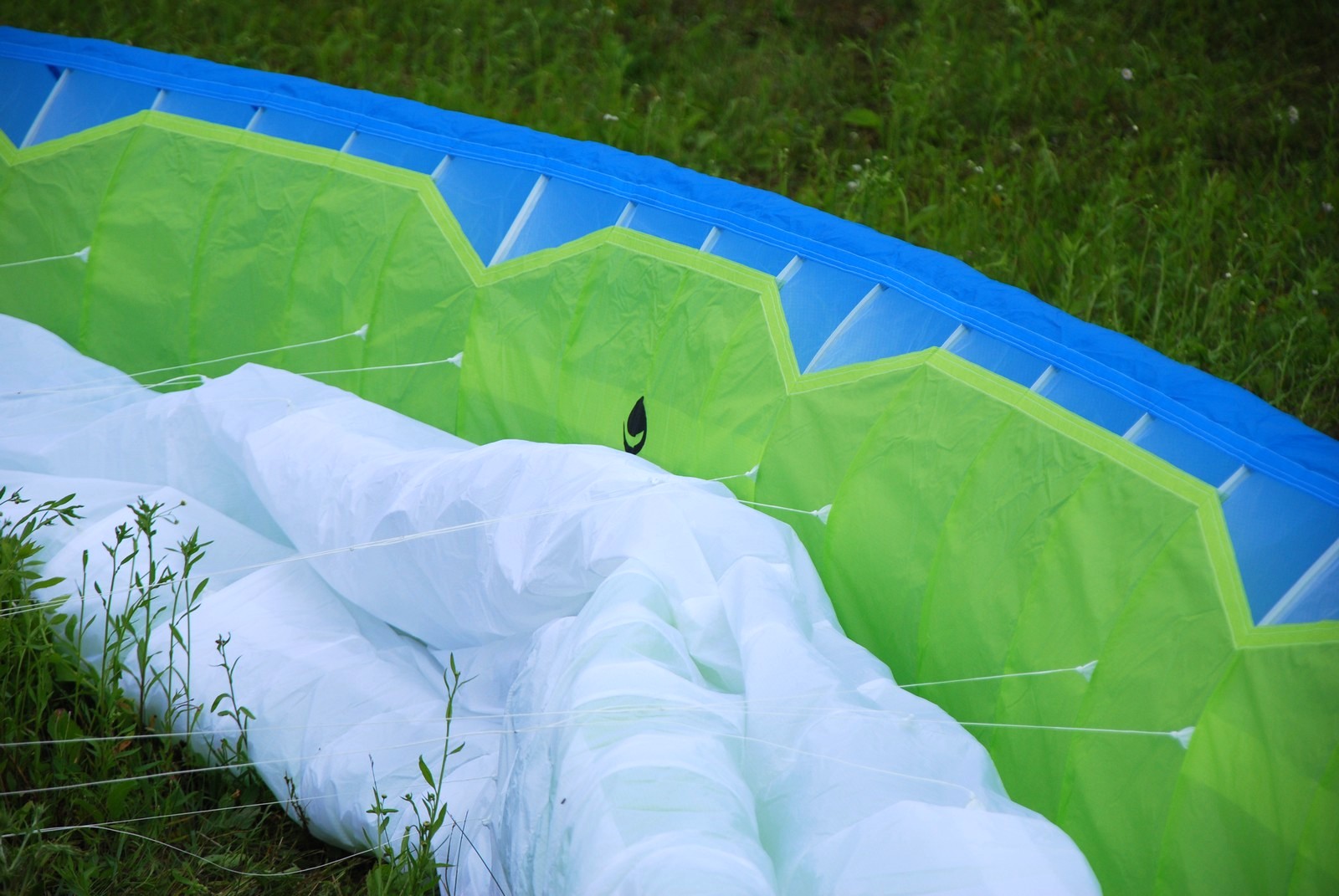 Собственно крыло. Да, Градиент определённо расстарался! О прежних Аспенах напоминает разве что раскраска да характерная пилообразная форма воздухозаборников. Удлинение — примерно 6,5, причём секций для такого удлинения достаточно много — 66. Форма крыла… Да что там говорить, красивая форма. Совершенно неожиданные для Градиента чуть загнутые вверх модные «уши». Необстроплённые пролёты составляют до 4 секций — больше у аппаратов класса EN C в реалиях 2017 года, по-моему, не бывает. Сложная внутренняя структура с чем-то вроде веерных косынок. Передняя кромка из долговечного 42-граммового Скайтекса с маркетинговым названием Everlast «выглажена» не хуже, чем у изделий самых-самых именитых брэндов. Качество кроя и пошива вопросов не вызывает — впрочем, у Градиента проблем с этим не припомню.