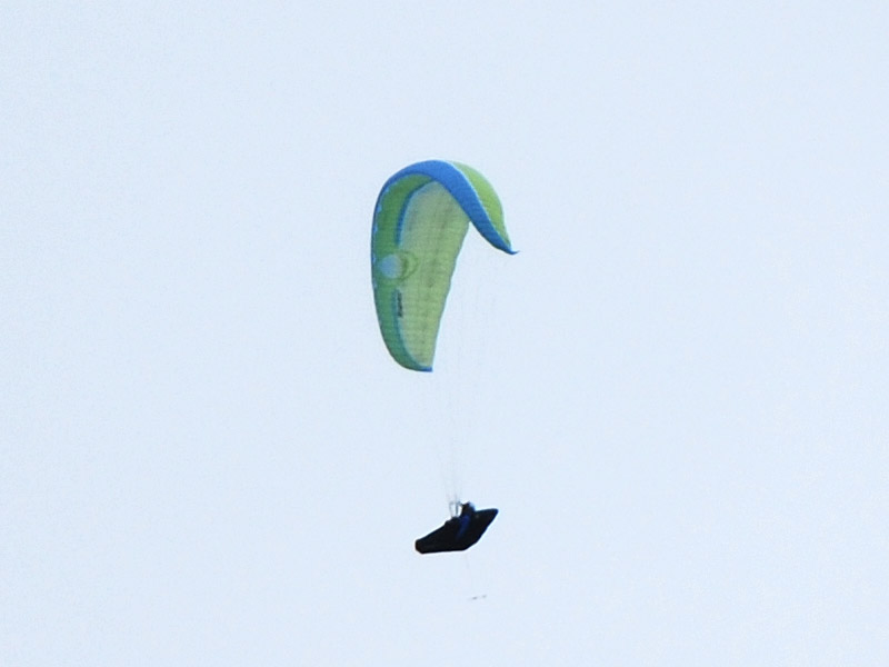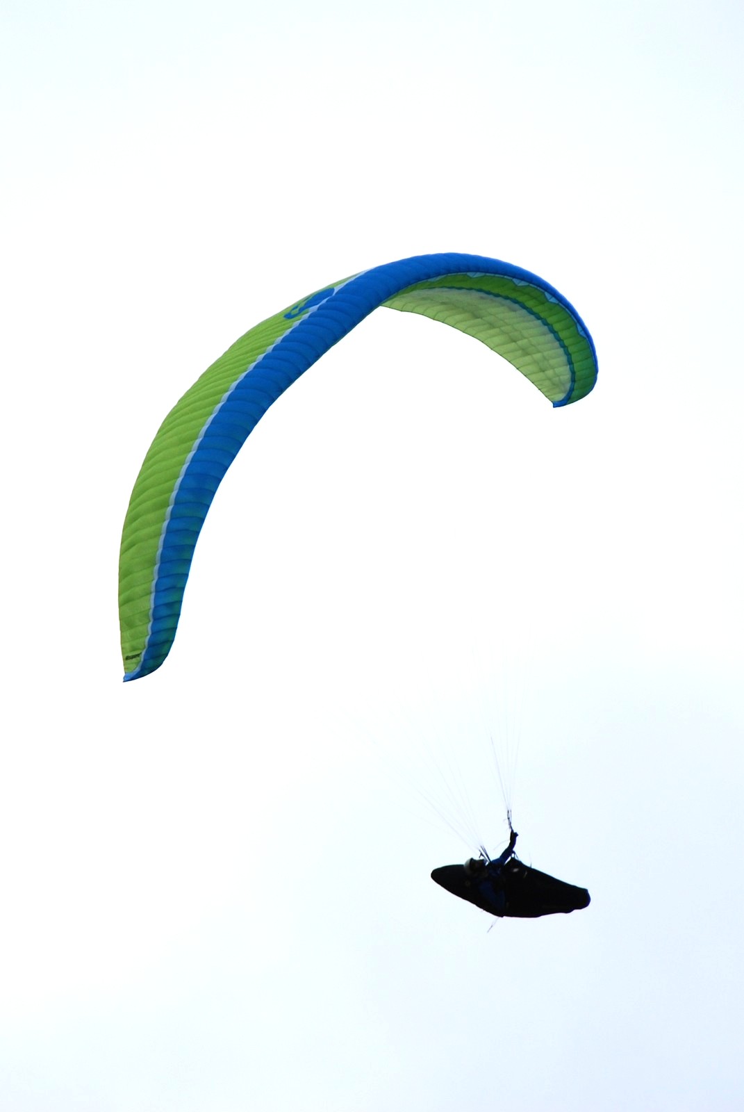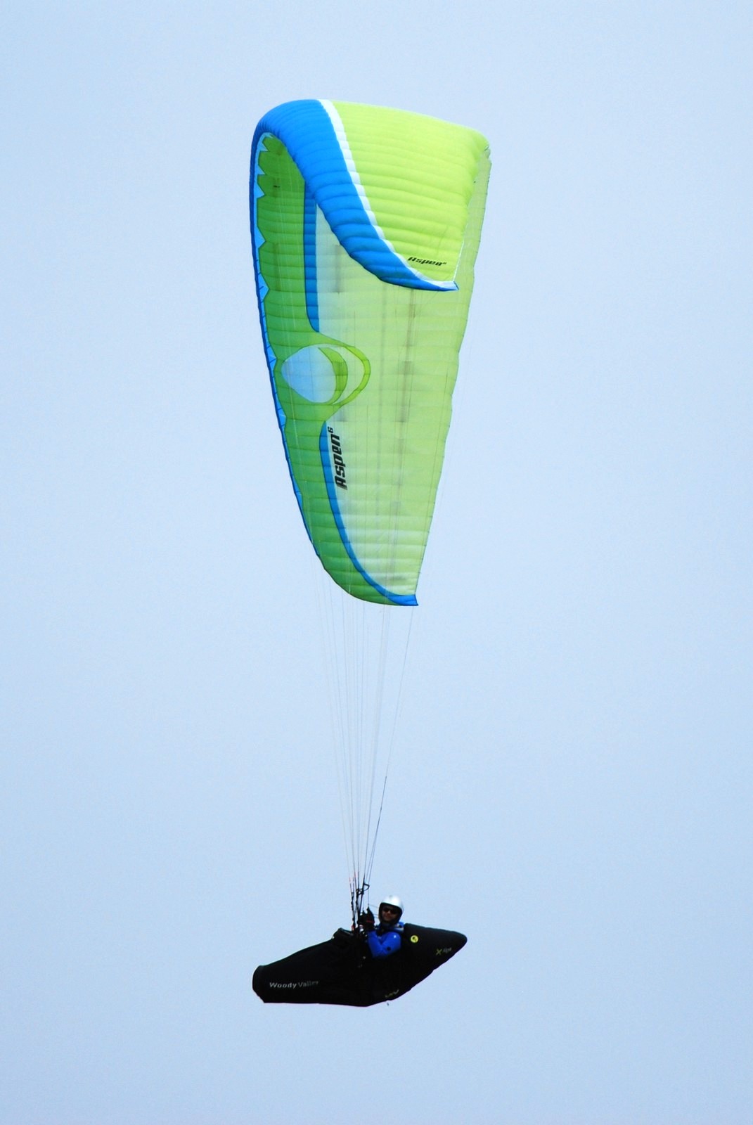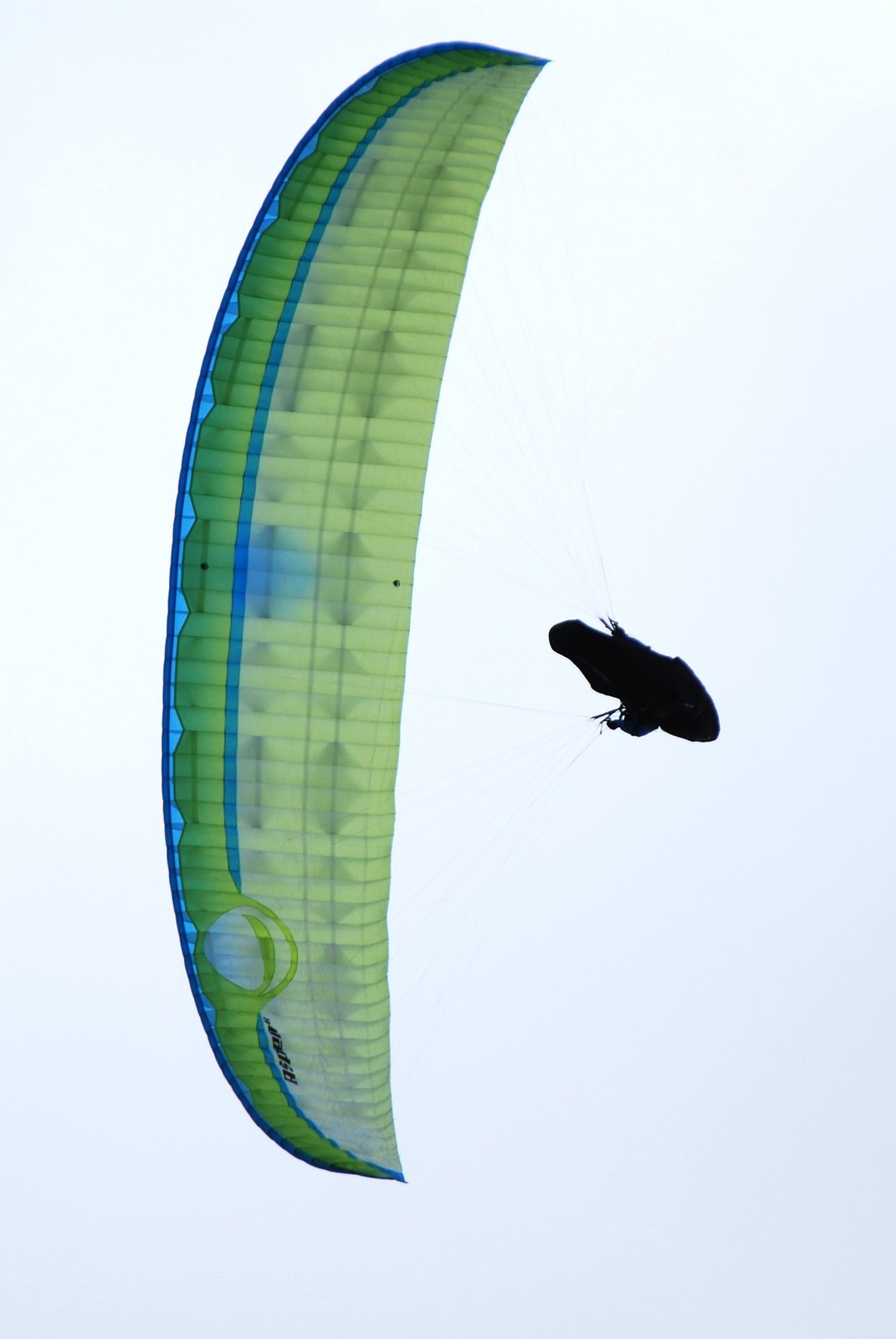 Летучесть. Вот с ней у Аспена всё совсем интересно. По состоянию на 2017 год в классе EN C стало уже трендом жертвовать максимальной скоростью ради высокого аэродинамического качества (привет, BGD Cure!). Но наш сегодняшний Аспен, похоже, играет совсем в другую игру. Прирост скорости на первой ступени акселератора (довольно лёгкого, кстати): 7−8 км/ч, вполне нормально. Качество при этом заметно не меняется — тоже нормально для современного EN C. А теперь — вторая! Плавно (чтобы меньше было влияние переходных процессов на замер) выжимаем акселератор на 100% — и получаем стабильный прирост скорости примерно +17 км/ч! В забросах доходит порой и до +20. Цифры, которых я давно не наблюдал в классе EN C! При балансировочной скорости около 36−39 км/ч в условиях равнины получаем максимальную воздушную скорость почти примерно до 58 км/ч! Справедливости ради надо заметить, что значения эти всё-таки не рекордные (похожие скорости выдавал ещё лет 10 назад ныне почти забытый Windtech Tecno) — но в реалиях 2017 года новый Аспен претендует на лидерство по максимальной скорости в своём классе. Повосторгавшись скоростью, зададимся сакраментальным вопросом — а что у нас с качеством? Естественно, точный ответ требует параллельных полётов (что почти никогда не удаётся организовать). А если субъективно — то по всей поляре Аспен Шестой не показался мне каким-то особенно выдающимся в плане аэродинамического качества. Летит нормально, даже хорошо — но не настолько круто, как, например, Trango XC3. Впрочем, удивляться тут нечему — невозможно одновременно добиться очень высокой скорости и очень высокого качества, не потеряв при этом в пассивной безопасности. Забегая вперёд, замечу, что с ней у нашего Аспена всё оказалось отлично. Итак, Аспен не жертвует скоростью ради качества. Скорее наоборот. И есть масса ситуаций, где высокая скорость без рекордного качества может оказаться куда полезней, чем супер-качество без высокой скорости. Зато с парением всё просто и понятно. Парит наш фигурант весьма убедительно, слабо наращивая снижение даже на довольно энергичных виражах.