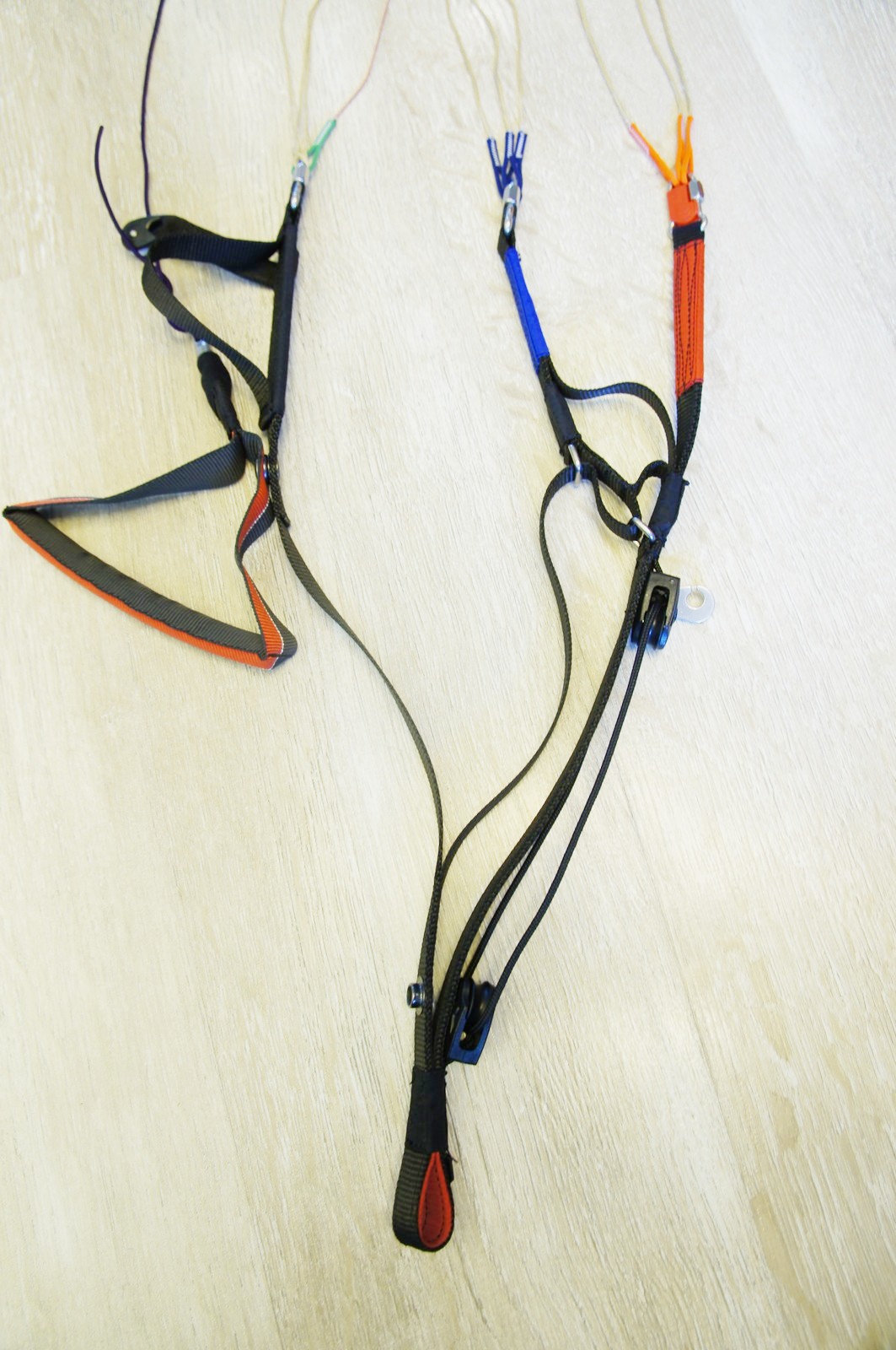 Кстати о стропах. Да-да, стропление у нашего подопытного полностью безоплёточное, что довольно толсто намекает на заложенные в аппарат спортивные амбиции. Количество строп вполне стандартное, но они несколько нетипично развешаны по свободным концам — выделенная цветом «противогалстучная» стропа «живёт» на заднем ряду. Схема стропления — A3B3C4.