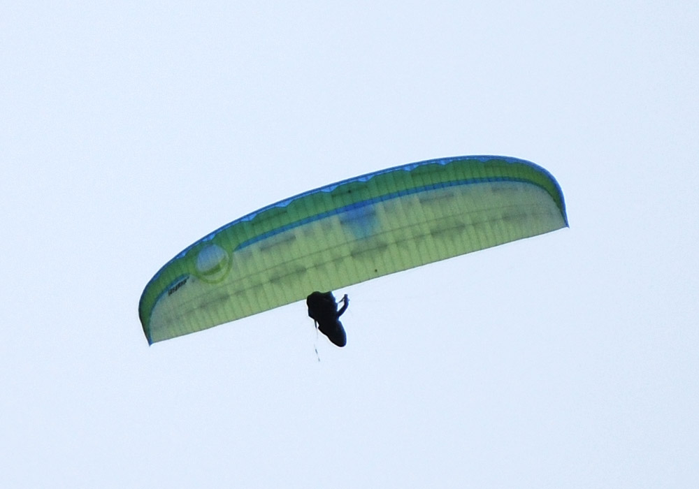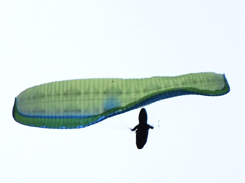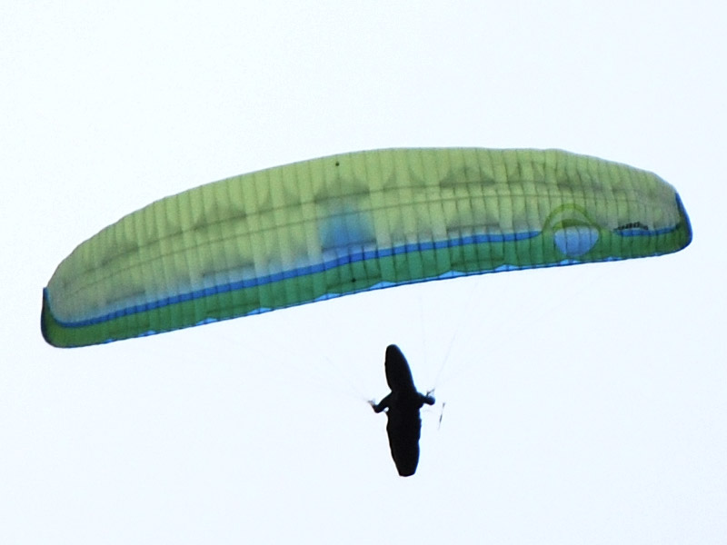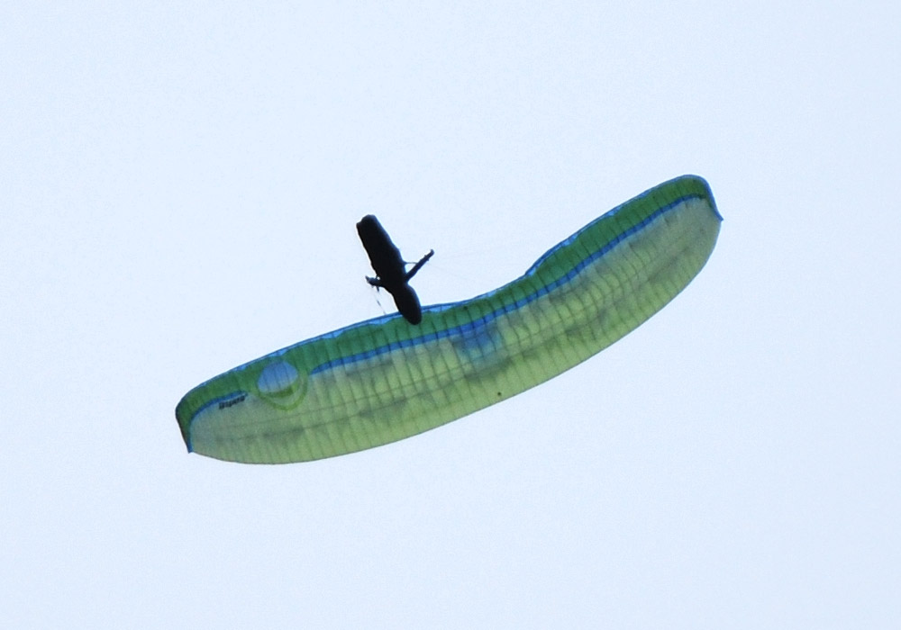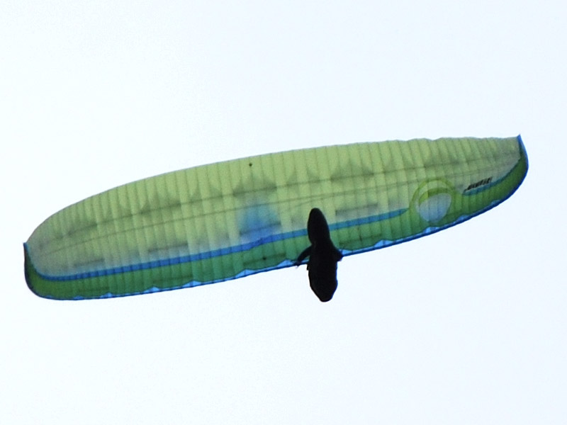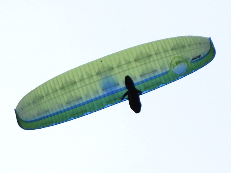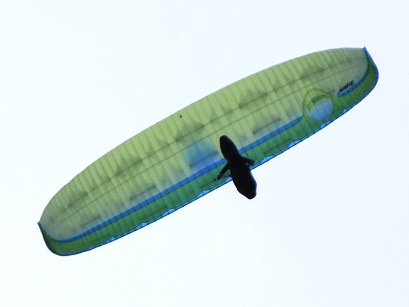 Вау! Это не уши, это какие-то ушищи. Внешние стропы A-рядов у Аспена расположены так, что в сложение вовлекается процентов по 25 размаха с каждой стороны. Естественно, такие мега-уши очень эффективны: снижение уверенно вырастает примерно до −3, а если ещё и вдавить акселератор — то можно раскочегариться даже примерно до −4. При этом режим относительно стабилен. Конечно, приходится нащупывать такое положение «ушных» строп, при котором Аспен (точнее, то, что от него осталось) не начинает трястись над головой — но такое положение, опредедлённо, существует. Оценка — отлично!