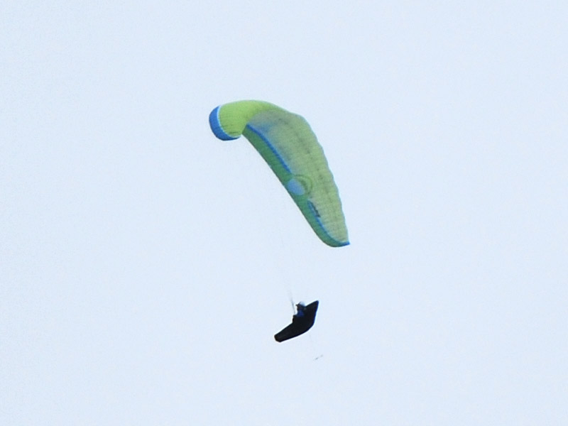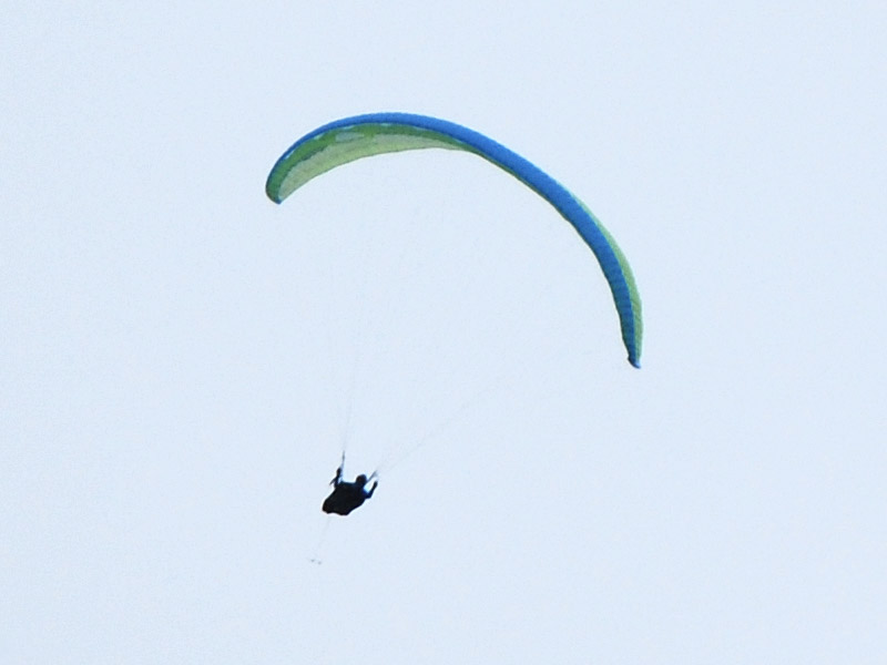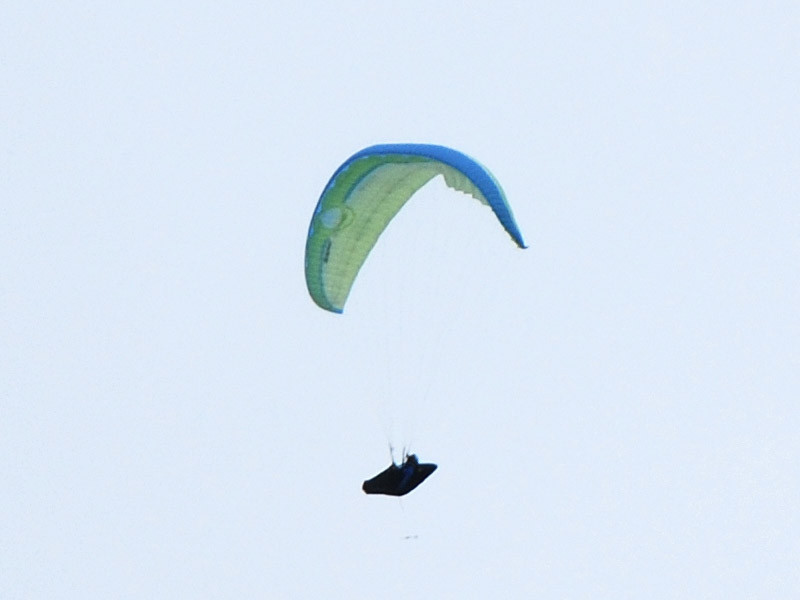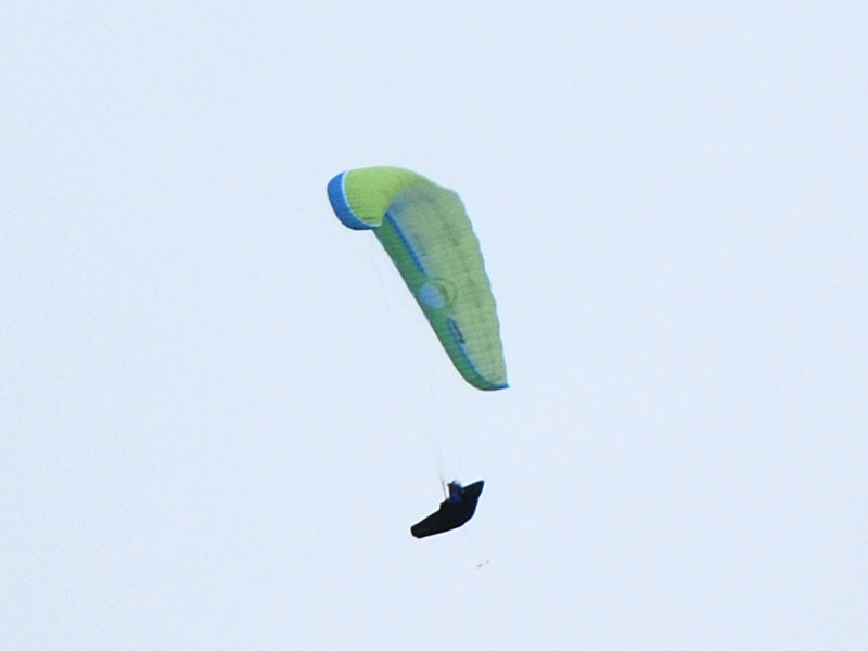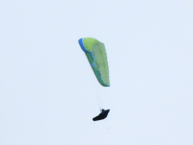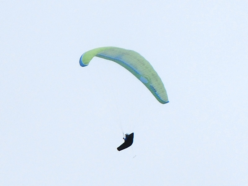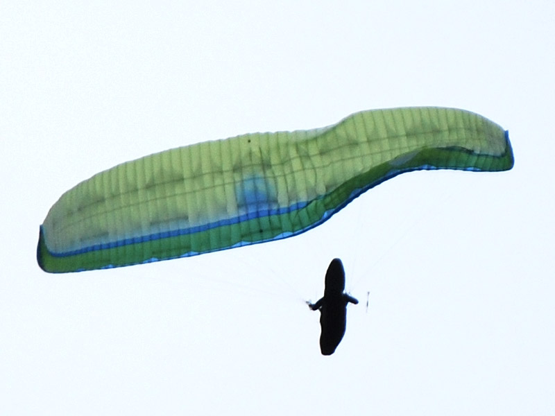 Вау! Это не уши, это какие-то ушищи. Внешние стропы A-рядов у Аспена расположены так, что в сложение вовлекается процентов по 25 размаха с каждой стороны. Естественно, такие мега-уши очень эффективны: снижение уверенно вырастает примерно до −3, а если ещё и вдавить акселератор — то можно раскочегариться даже примерно до −4. При этом режим относительно стабилен. Конечно, приходится нащупывать такое положение «ушных» строп, при котором Аспен (точнее, то, что от него осталось) не начинает трястись над головой — но такое положение, опредедлённо, существует. Оценка — отлично!
