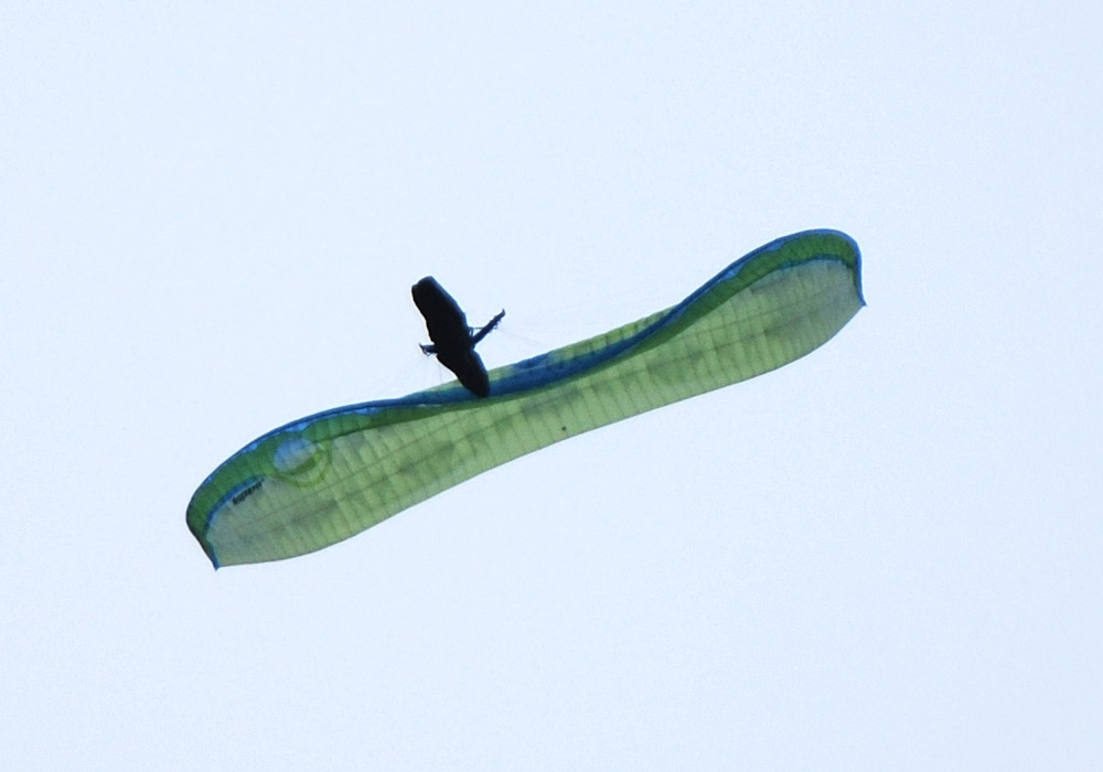 Дурная привычка после набора первых 50 метров отвлекаться от управления, чтобы потыкать в приборы и влезть в кокон, в случае с Аспеном оказывается действительно дурной. Аппарат легко уходит с курса, настоятельно требуя схватиться за клеванты… но практика показывает, что нужно это далеко не всегда. Крены примерно до 15 градусов на затяжке легко исправляются одним только весом! Круто для EN C. При буксировке в неспокойном воздухе Аспен склонен к выраженным движениям по тангажу и сильным изменениям воздушной скорости — он как будто запрыгивает вверх по невидимым ступенькам. Ощущение вполне известное и знакомое, но нечасто возникающее на «ен-цешках». Эффективность клевант под тягой сильно выше среднего — для быстрого исправления возникающих кренов достаточно бывает короткого «выпада» рукой сантиметров на 20−30. В процессе затяжки Аспен достаточно сильно заваливается назад, но запас по углам атаки у него очень велик, беспокоиться не о чем. Клевок после отцепа невелик по амплитуде, но достаточно выражен. Полетели!