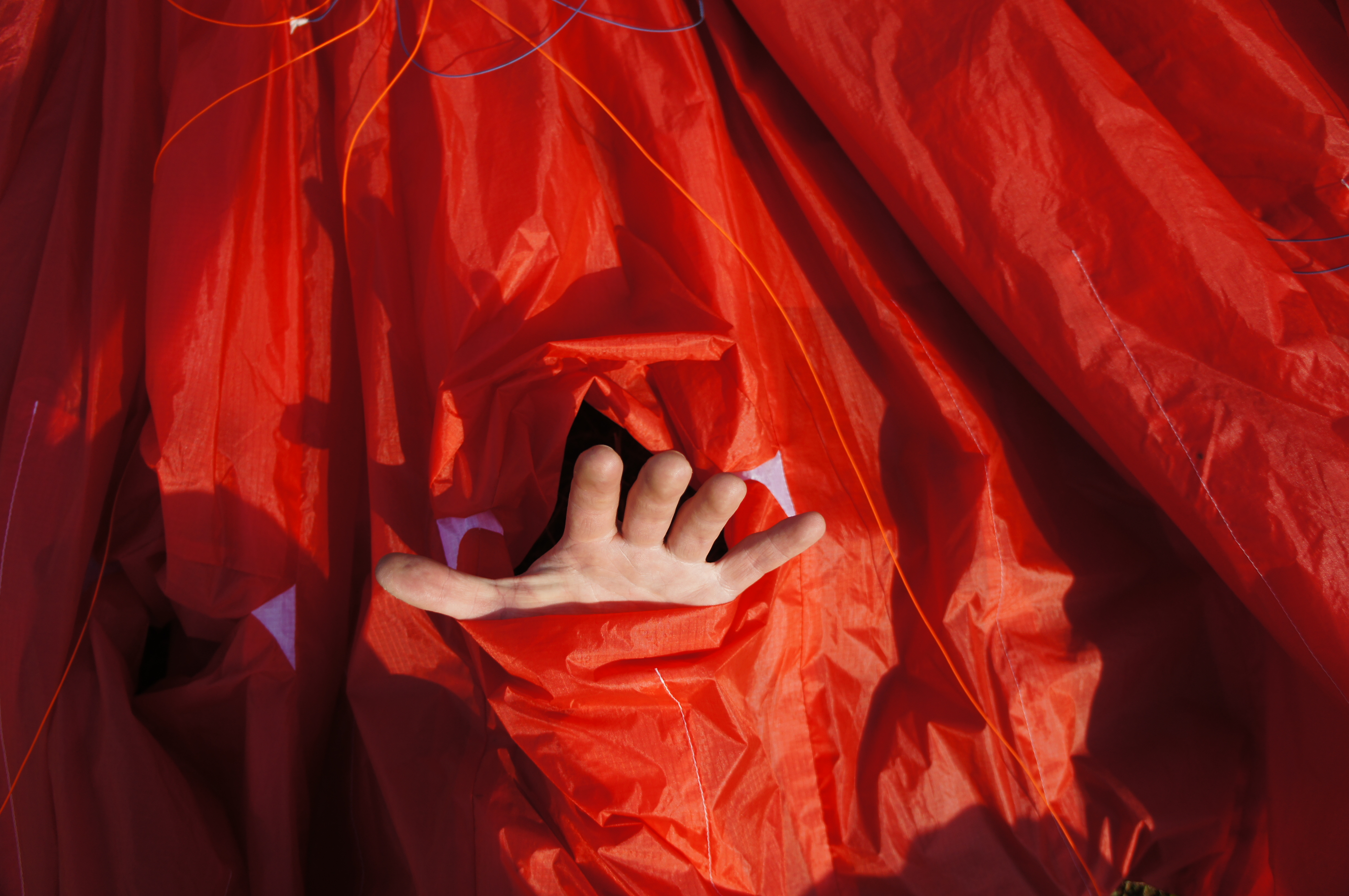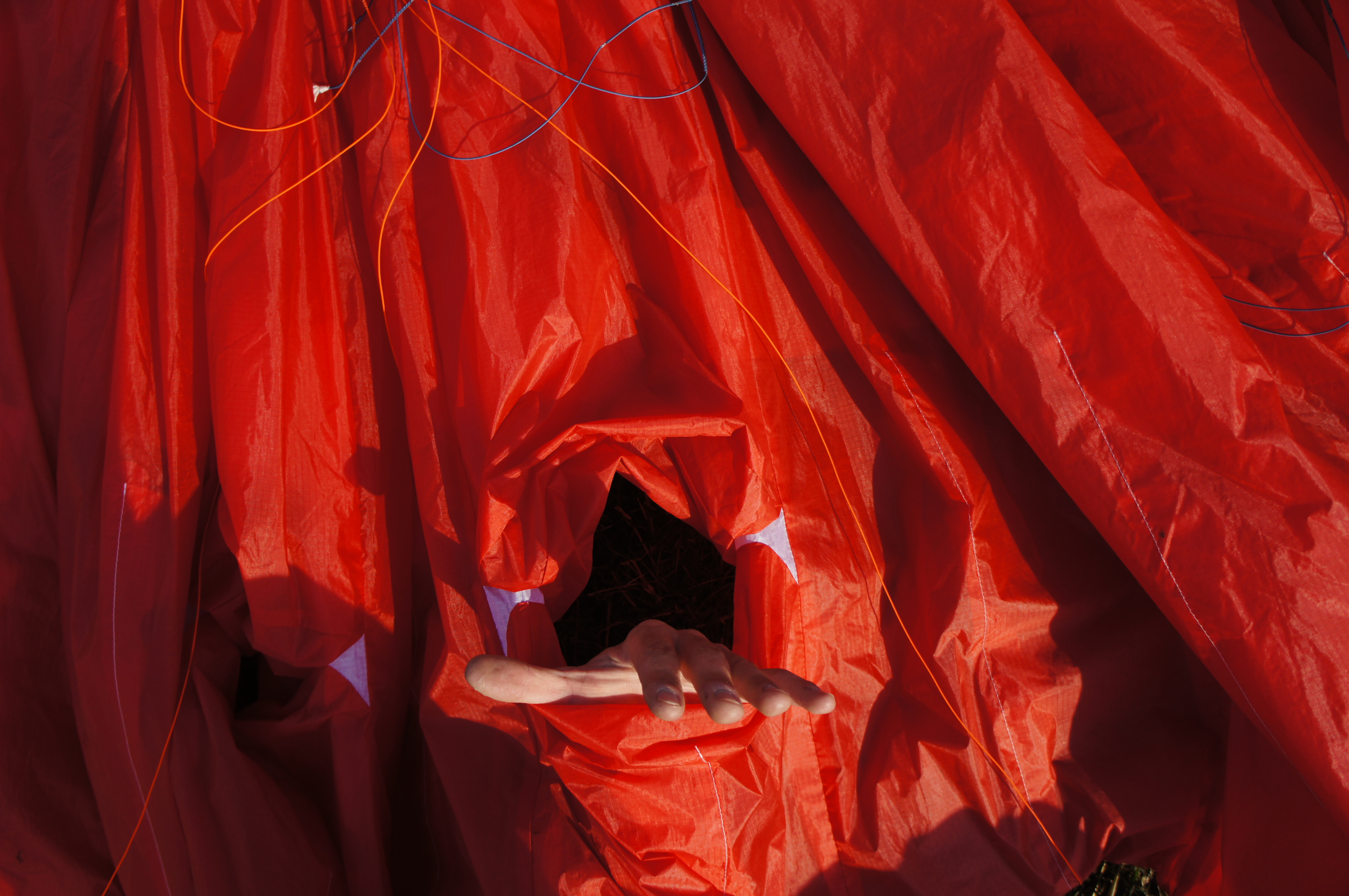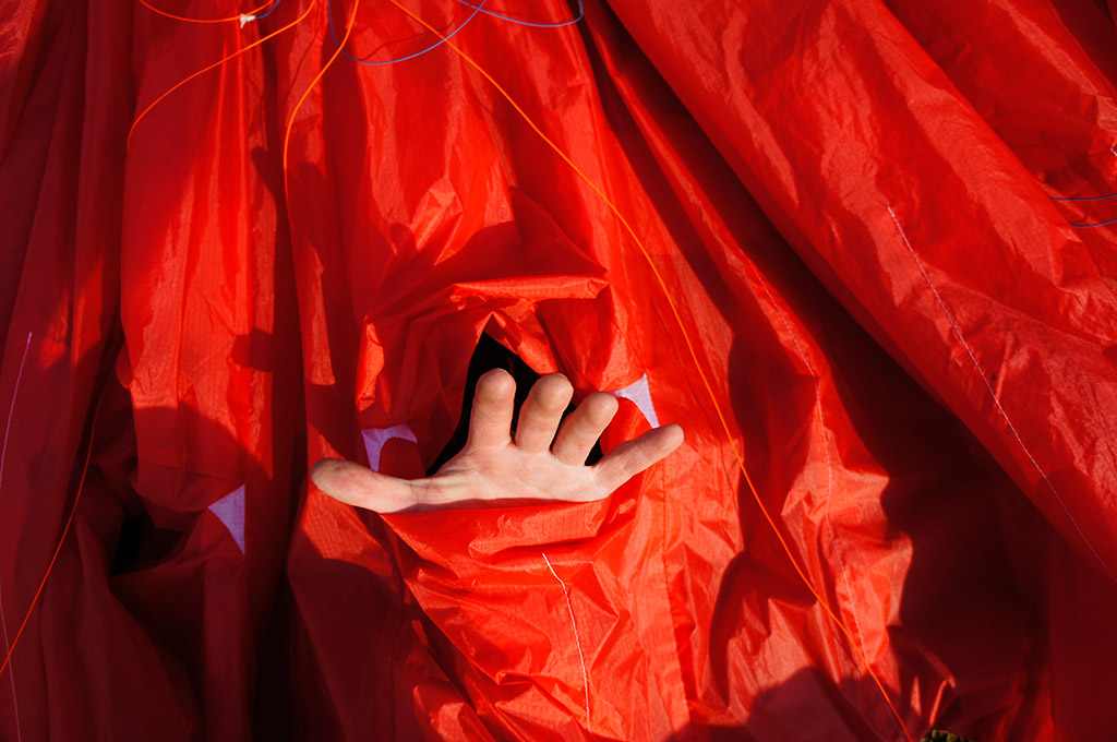 Отлично. У Текилы очень сильно нагружены B-ряды, и развить сложение по хорде дальше линии крепления B-строп (а это скромные 20−25% хорды) весьма проблематично. Усилие на A-ряду при входе в сложение неожиданно невелико, передняя кромка подламывается достаточно мягко. После сложения аппарат плавно уходит назад, чтобы столь же плавно клюнуть вперёд и вбок. Раскрытие происходит быстро, но без излишней резкости и не сопровождается внезапными движениями по крену, характерными для более строгих аппаратов. Впрочем, покачаться по крену после сложения Текила любит, но амплитуда этих движений скромная, а периоды достаточно большие. Амплитуда косого клевка в процессе выхода из режима — не больше 30−40 градусов, потеря высоты — метров 10. Курсовое отклонение заранее предсказать тяжело из-за некоторой склонности Текилы к раскачке по крену на выходе из сложения, но вряд ли угол отклонения по курсу может превысить 90 градусов.