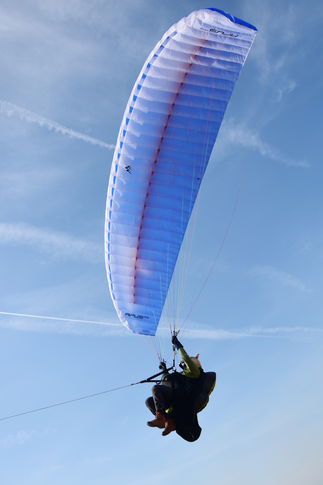 Ну ладно, с финтами понятно — а как насчёт в термиках попарить? Да без проблем! Про летучесть напишу ниже, а в плане манёвренности Апус оказался ожидаемо хорош и в термиках тоже. По парапланерным меркам реакции Апуса на управление, конечно, островаты — но в сравнении с другими минивингами Апус, наоборот, достаточно прост, но при этом сохраняет характерные для минивингов минимальные запаздывания и очень быстрые реакции на управление. И если минивинги от Little Cloud или Sky Country за час-другой полёта выжимали из меня все соки, то с Апусом в этом плане намного, намного проще. Вполне сойдёт как первый минивинг!