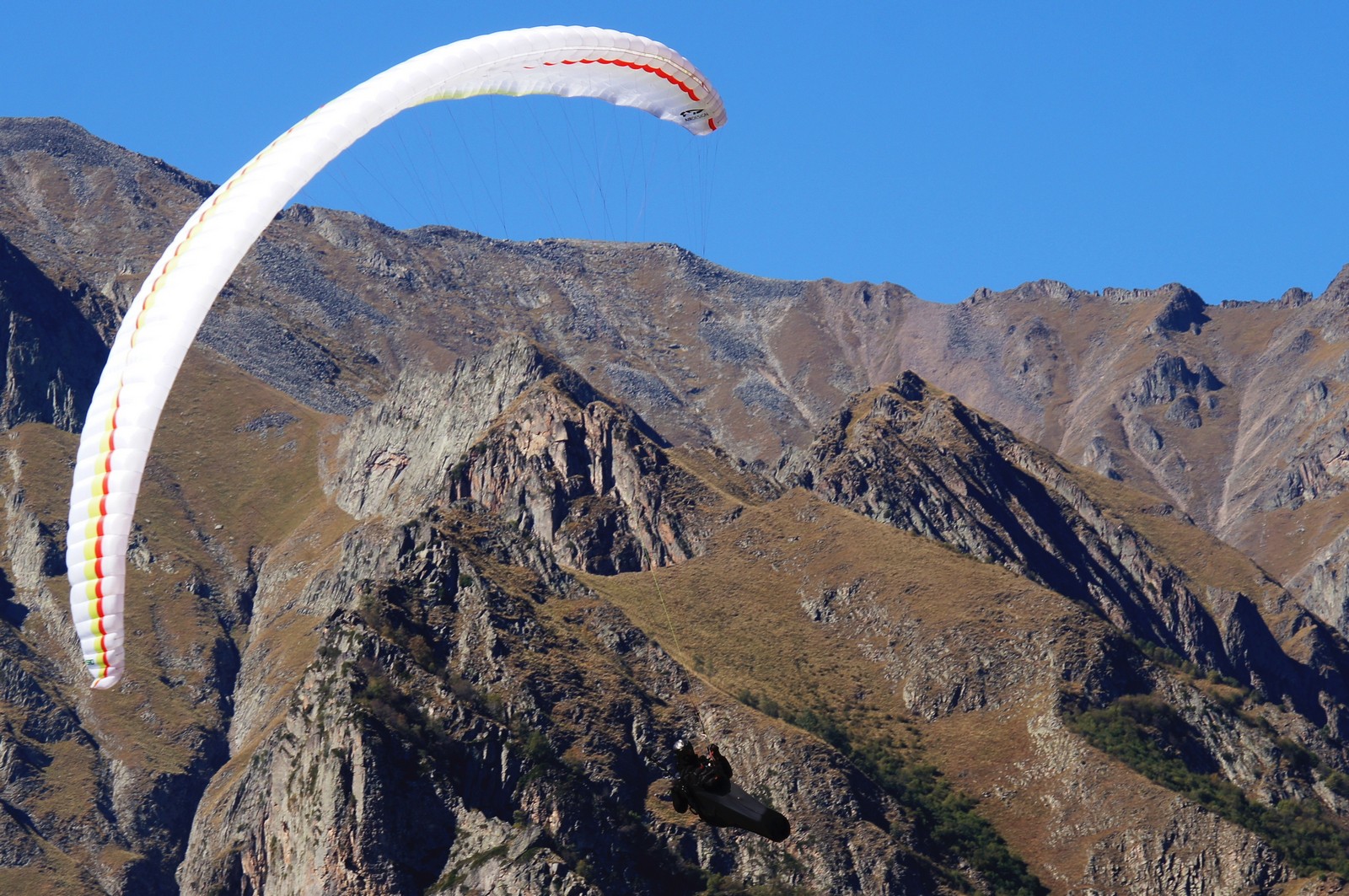 I have flown over 50 hours, including 36 hours - Pamir-Kyrgyzstan, 2 hours - small SIV on Toktogul lake, 17 hours - competitions in Chegem, 3 hours - dynamic, 3 hours - plain. Conditions ranged from mild dynamics to narrow turbulent flows near the relief and rotor landings. At altitudes from zero to 7000m. Loading in three variants: bivouac over Pamir - 112-115kg. Tests breakages on Toktogul lake - 90-95kg. Competitions in Chegem - around 100-102 kg.