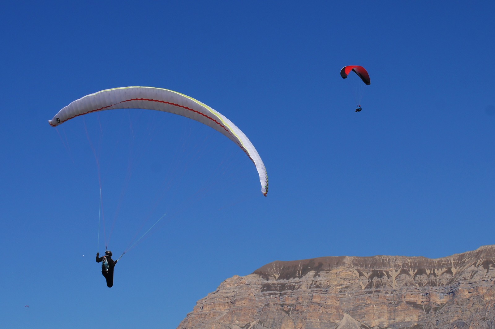 I have big experience of flying only paragliders Ozone Mantra 4 and 6 so I compare the handling and feelings with them. They are the same class, but not lighter and a bit shorter. I flew in a group, paying attention to glide and set up in streams with Ozone Enzo 2 and a little with Niviuk Icepeak 7