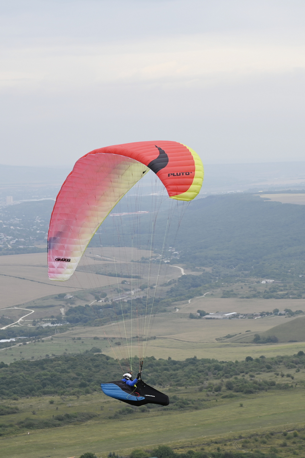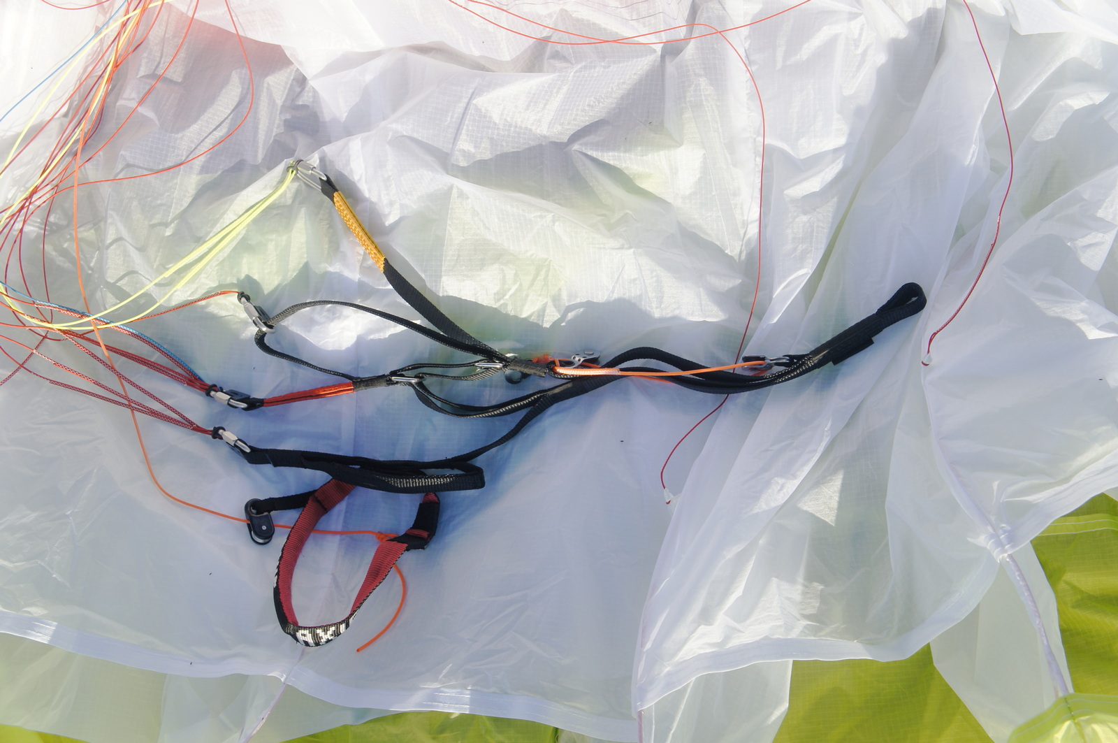 Казалось бы, чем могут удивить концы у аппарата с лейблом EN A?.. Акселератором! Точнее, всем, что так или иначе связано с полётом на большой скорости. В наличии и качественные подшипниковые блочки, и довольно большой ход акселератора, и сложная кинематика концов, меняющая крутки крыла в зависимости от хода акселератора. Но первое, что бросается в глаза — это огромные чёрные ручки на задних рядах! Такие ручки достойно смотрелись бы на концах любого, даже самого навороченного, спортивного крыла. Правда, кинематика задних рядов не предусматривает сохранения формы профиля — при работе теми самыми ручками он будет слегка ломаться, потому что задний ряд не соединён с прочими никакими "бриджами". Впрочем, для аппарата класса EN A это уже из области придирок — и без того производитель сделал почти всё, чтобы побудить пользователя этого Плуто часто и от души пользоваться акселератором.