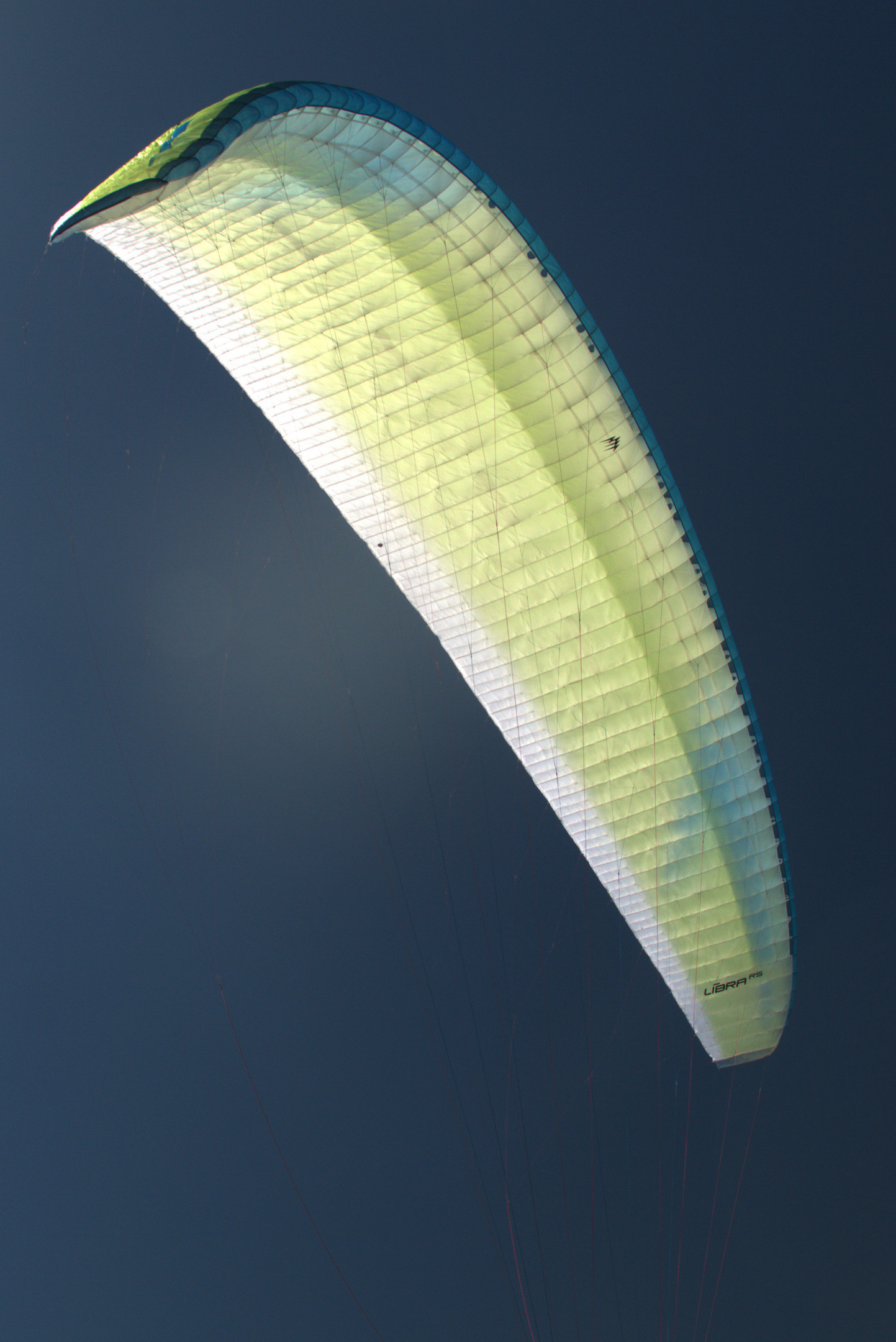 This is about what you would expect from a wing with an AR of 7, which is slightly above the EN C class standards. Due to the high aspect ratio, the Libra stores energy more slowly and smoothly than wings with a lower aspect ratio, but releases it more powerfully. Wingovers are excellent, only hampered by the need to brake heavily. The landing swoop is also impressive: comparable to the EN D class. Not for everyone — but those who are ready for it will definitely like it!