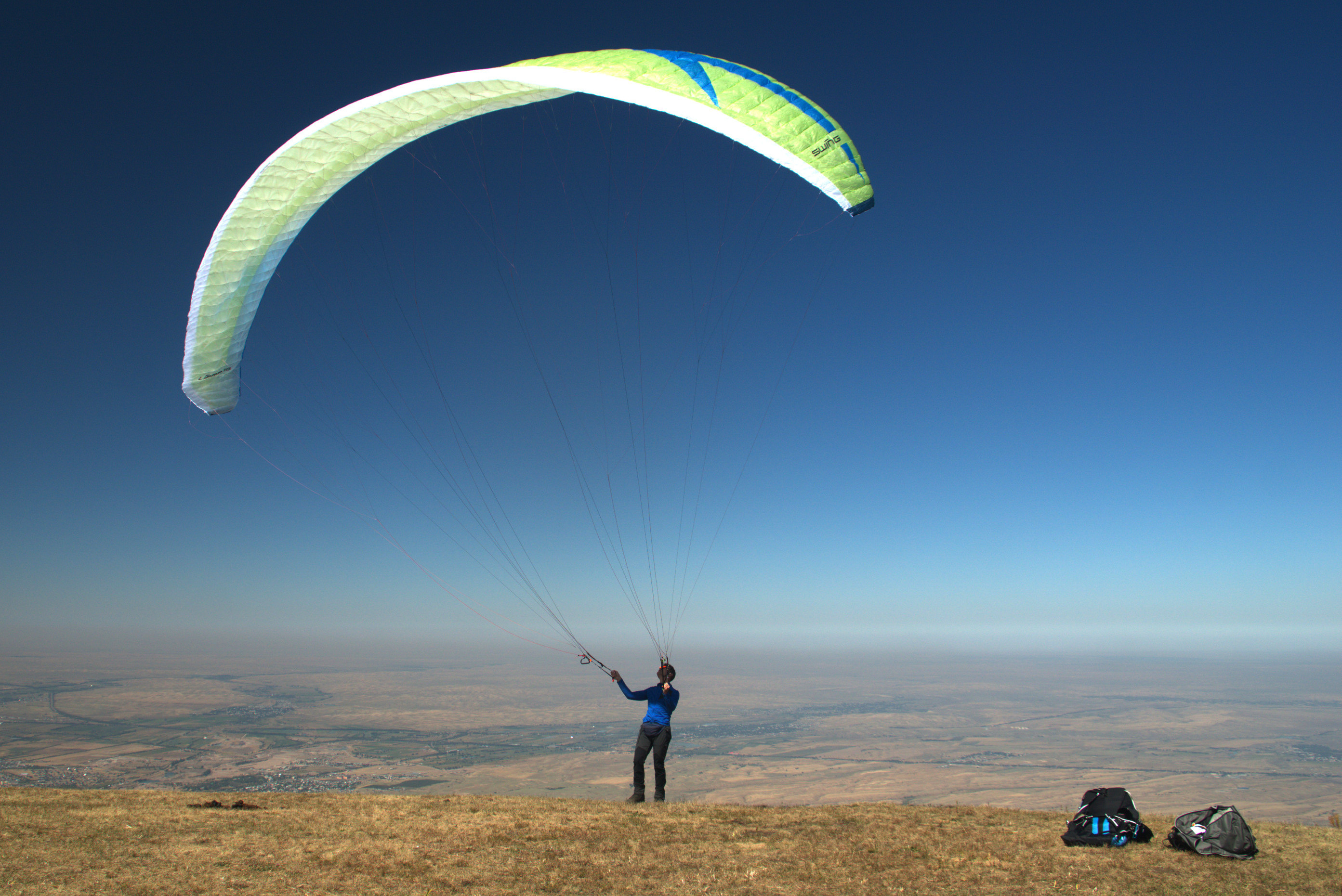 Intrigue! On the one hand, RAST wings (and the Libra RS is such a wing) tend to come into the flight position a little slower. On the other hand — lightweight wings tend to lift very easily and tend to "shoot" when launched in strong winds. Which trend wins? Balance wins! I didn't notice any sluggishness in the process of lifting the wing, and in strong winds the Libra RS "shoots" no more than my familiar Niviuk Klimber 2P, which is also light with an aspect ratio of about 7. Cobra launch and other such activities are not a problem due to the low mass of the wing and its good control response. The takeoff run is a bit longer than expected and the wing does not take the load immediately.
