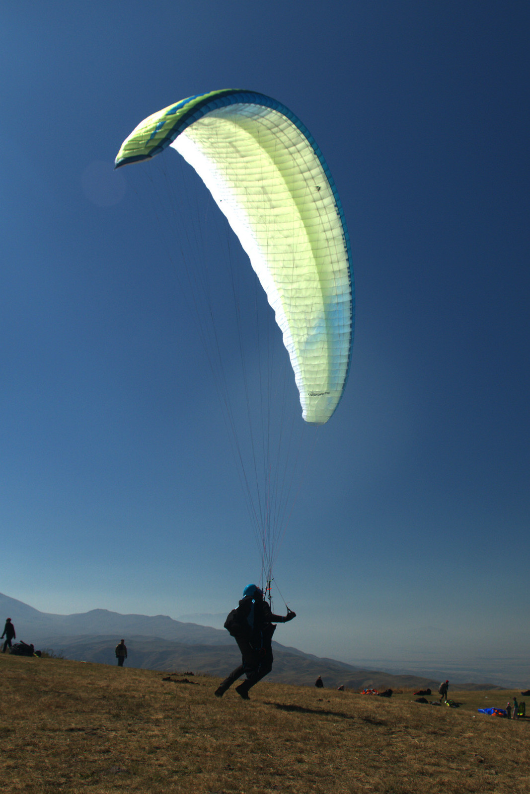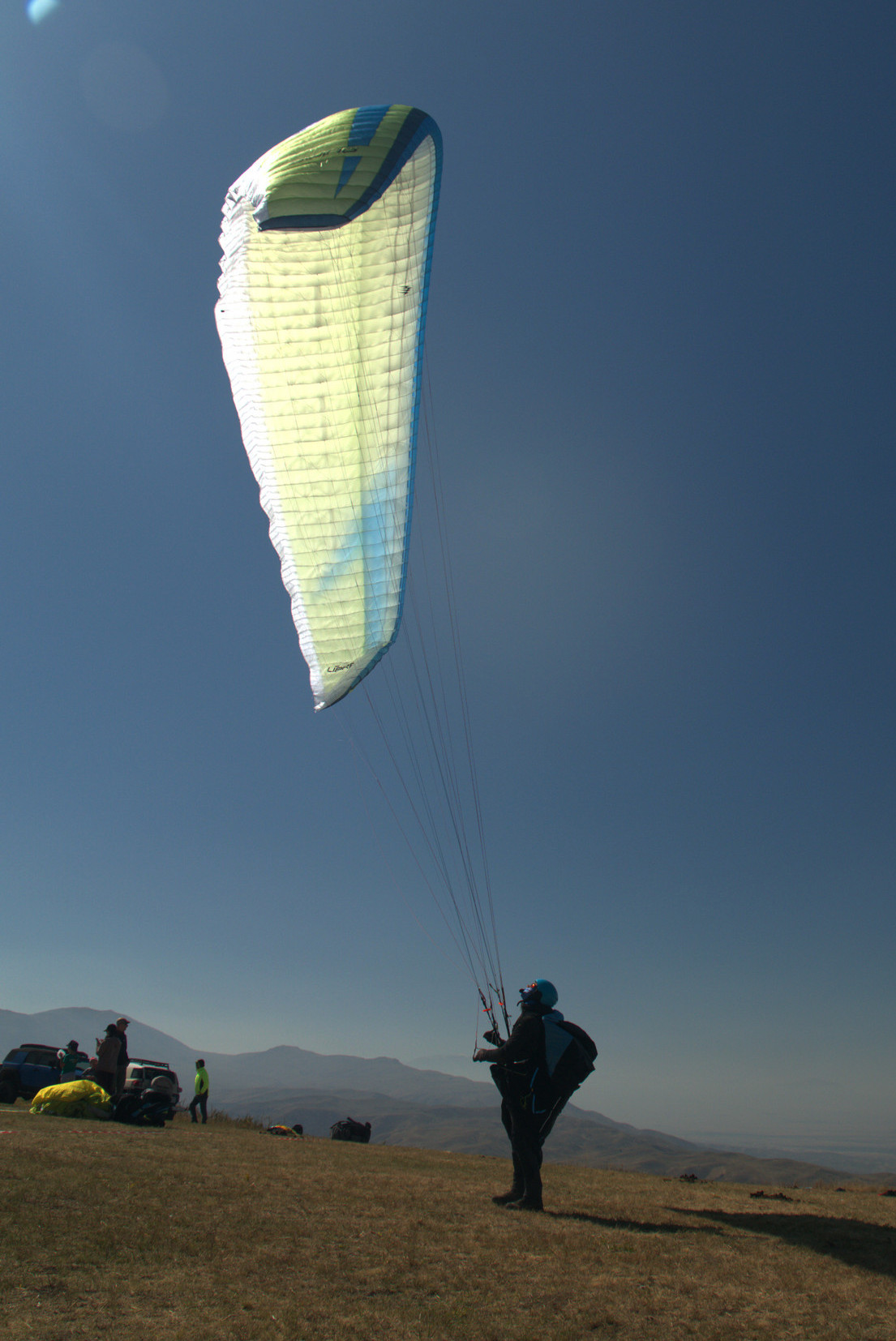 Comfort... To be honest, Libra didn't shine here. It's very wobbly! A rare case for an EN C wing. Some wobble can occur even during transitions in almost calm air, and when things get rough, there is a lot of wobble. Like many light and semi light gliders, the Libra likes to move around a lot in both pitch and yaw. These jumps are fast, but small in amplitude, and do not pose an additional risk of collapse, but can require a lot of pilot attention, at least during the first few hours of flying the Libra. In thermals things get even more complex. The Libra is a very "talkative" glider, giving lots of feedback through brakes, risers and airspeed changes, but it's not so easy to separate the useful feedback from the less useful data. The brake and riser load changes are large and fast, easy to feel but less easy to understand. Fortunately, there's some "2-liner magic" that makes things easier. Libra can "sniff" the thermals, it tends to drift into the core when it's a few hundred meters ahead. Near the core, the Libra gets too "excited" and can overload its pilot with tons of feedback. After the first hour, I felt a bit more confident and started to ignore some unnecessary feedback. The simple fact is that Libra generally gets thrown out of the tight and strong lifts, and a heavy dose of countersteering will get you right into the core!