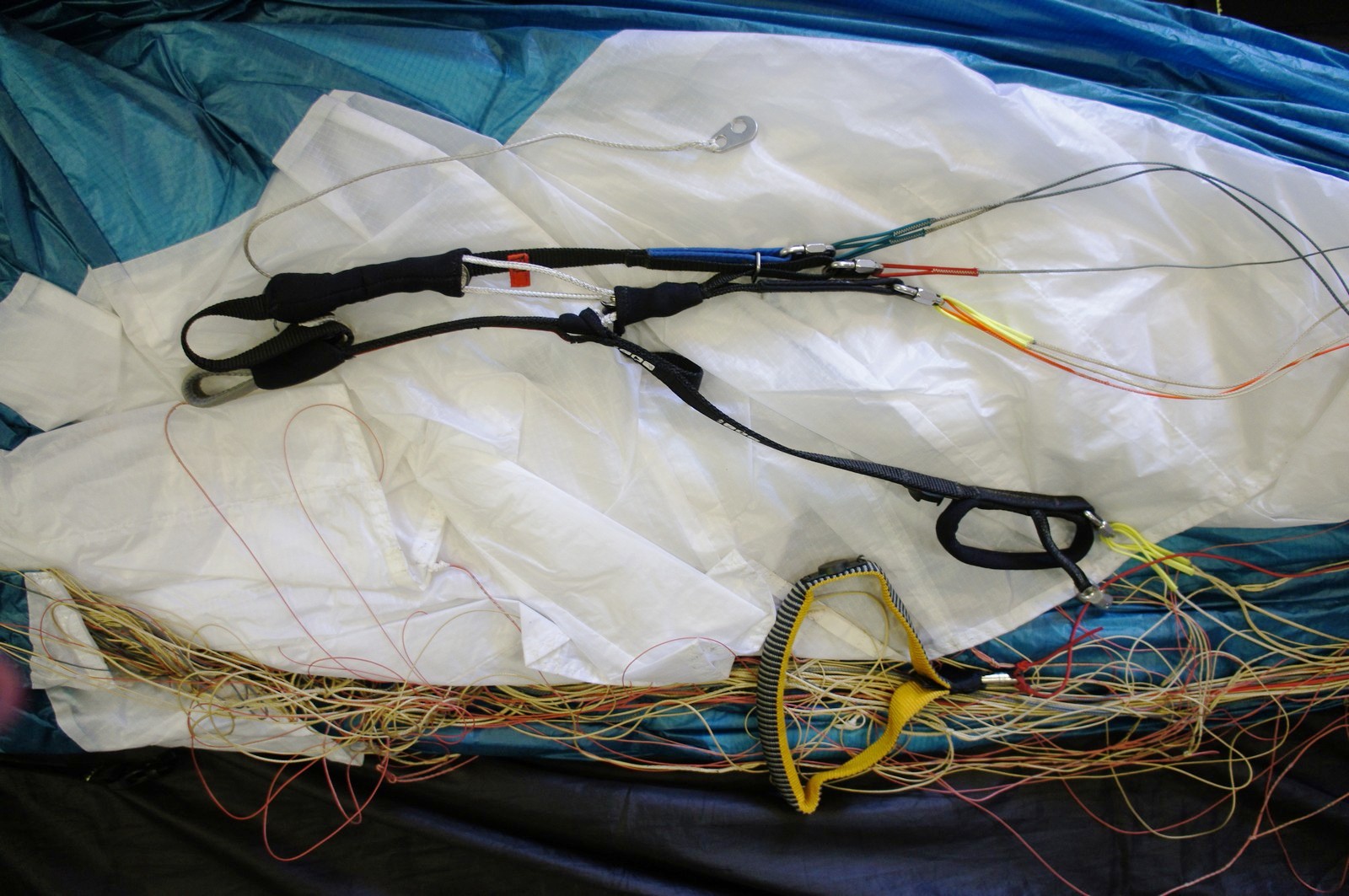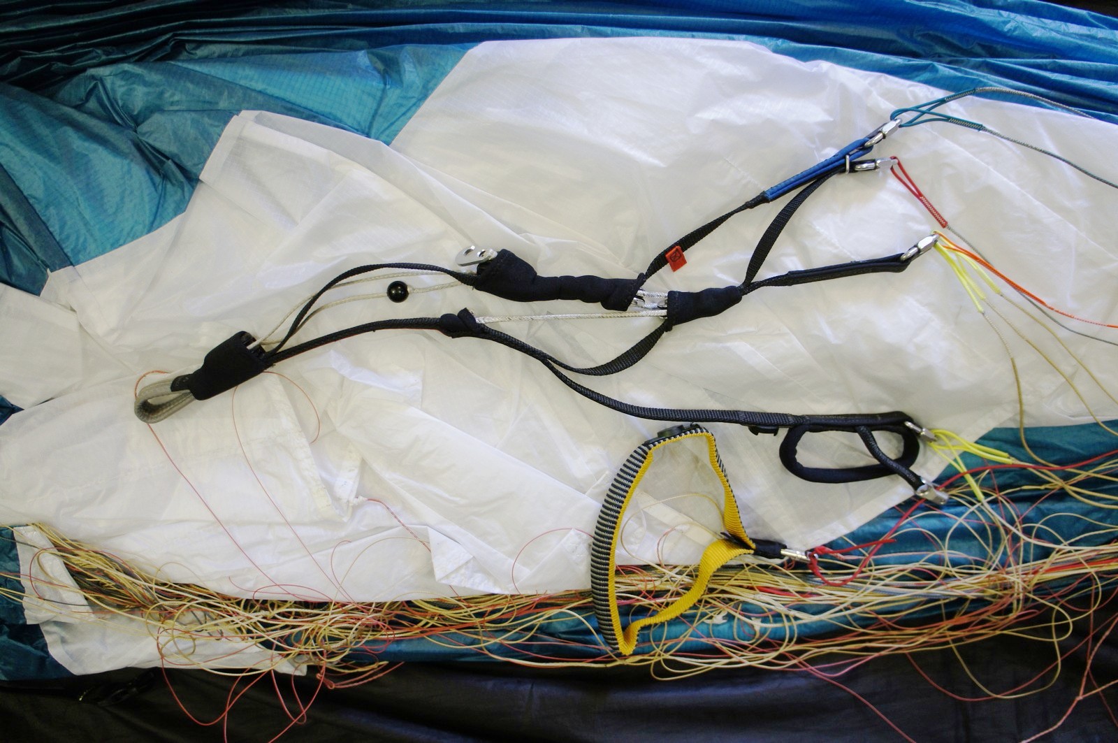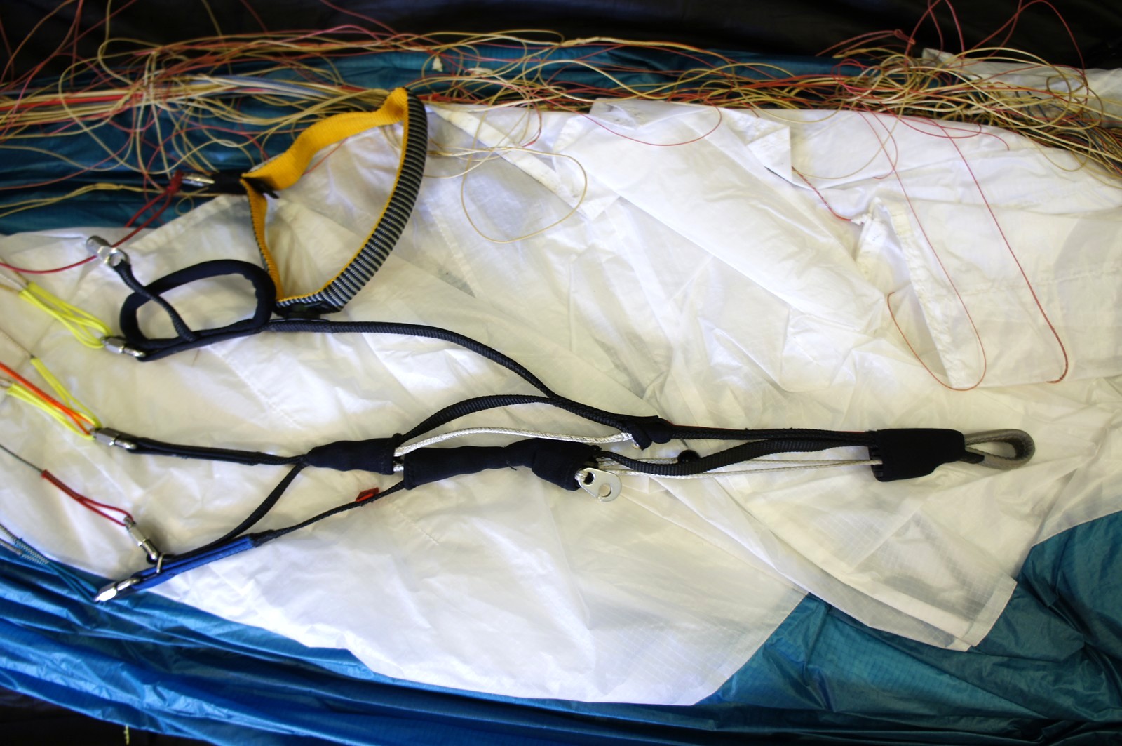 Придётся, видимо, написать набившее оскомину словосочетание «классика и инновации». Классика заключается в форме крыла — благородной, с умеренным удлинением, без лишней агрессии, в привычном по другим Эдвансам оформлении свободных концов, в высоком качестве изготовления. Но и на инновации Эдванс не поскупился! Впечатляет кинематика свободных концов. Куча блочков, хитрые законы изменения круток, акселератор с овердрайвом (бусиной, выключающей один из блочков на больших ходах ног)… Подобные концы — правда, ещё чуть похитрее — применены были на Omega X-Alps образца 2017 года. Не меньше впечатляют и тонюсенькие безоплёточные стропы в защитной анти-УФ-пропитке, начинающиеся от самых свободных концов. Конструкция крыла, если присмотреться, впечатляет не меньше. Очень трудоёмкие в производсте веерные косынки, куча стяжек, немаленькое для такого удлинения количество секций, длинные мощные лески… В общем, вроде бы Эдванс Эдвансом, но с очень серьёзными амбициями и претензиями.