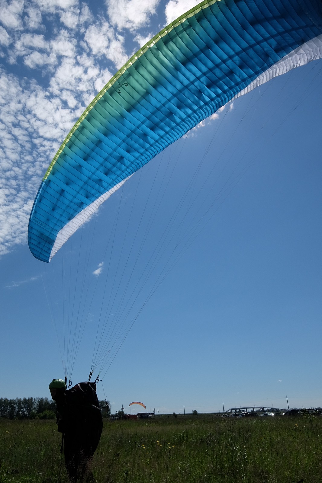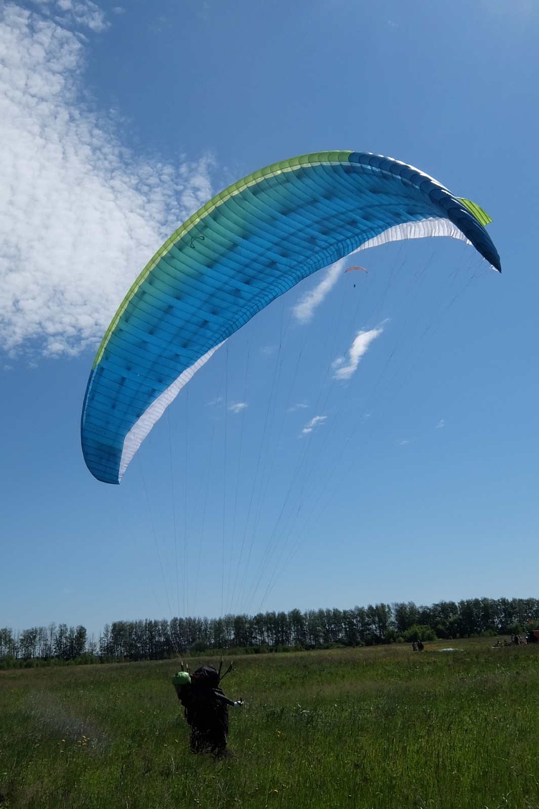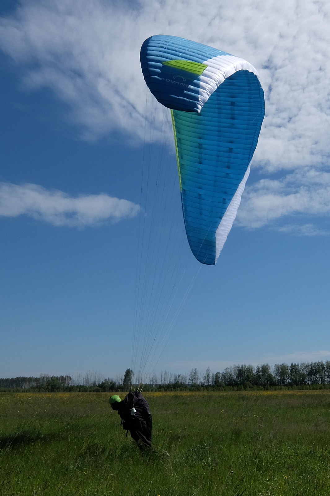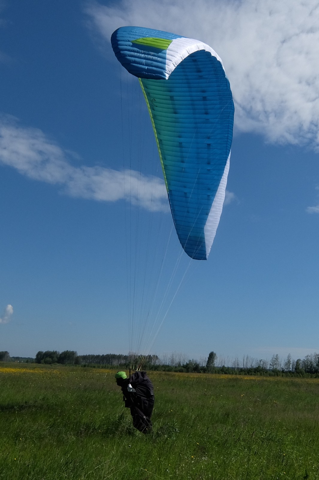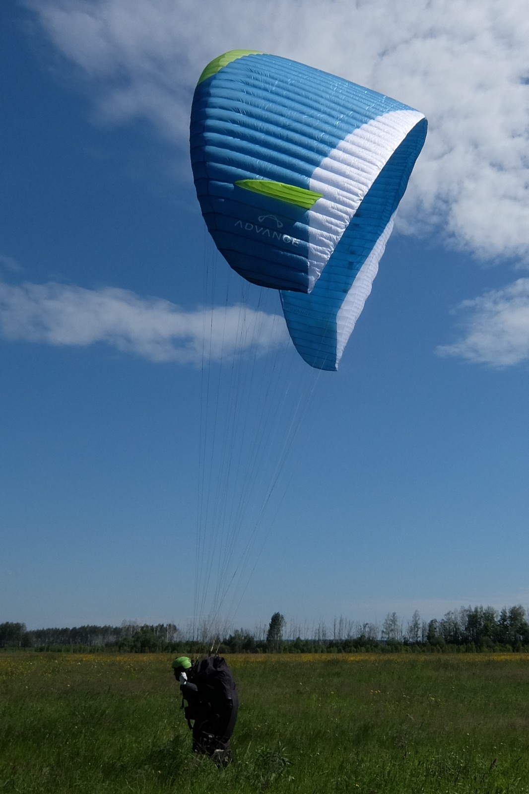 И снова никаких проблем. Первая же проба Сигмы на склоне заставила меня заняться кайтингом — косой ветер не позволял выпарить с самого низа склона, пришлось практически положить аппарат «ухом» на траву, хорошенько нагрузить весом верхнюю консоль… и побежали-побежали-побежали. Как и ожидал, Сигма повела себя очень послушно и спокойно — но нижнее «ухо» всё-таки время от времени складывалось, чего за прежними Эдвансами при таких играх почти не наблюдалось.