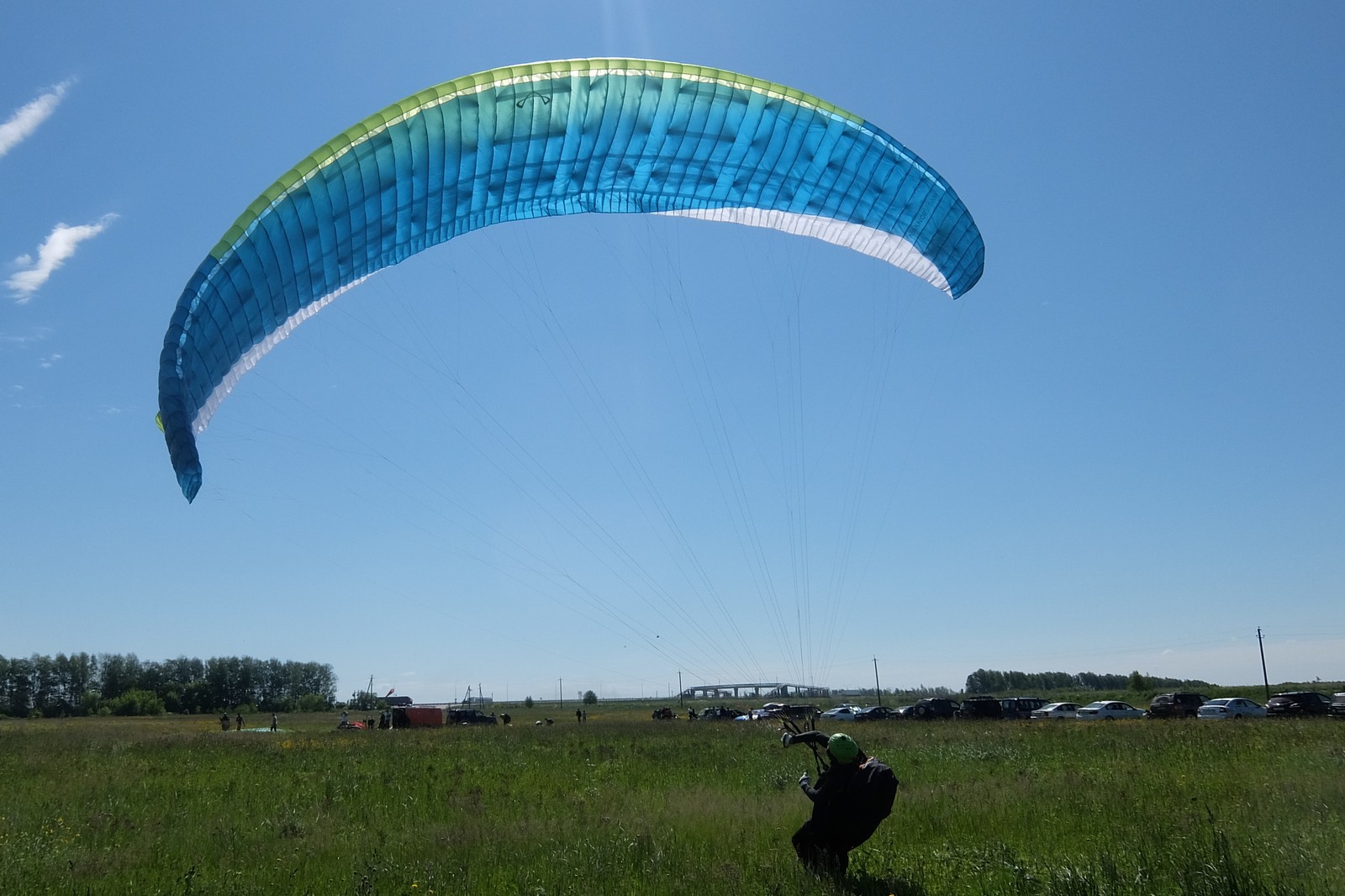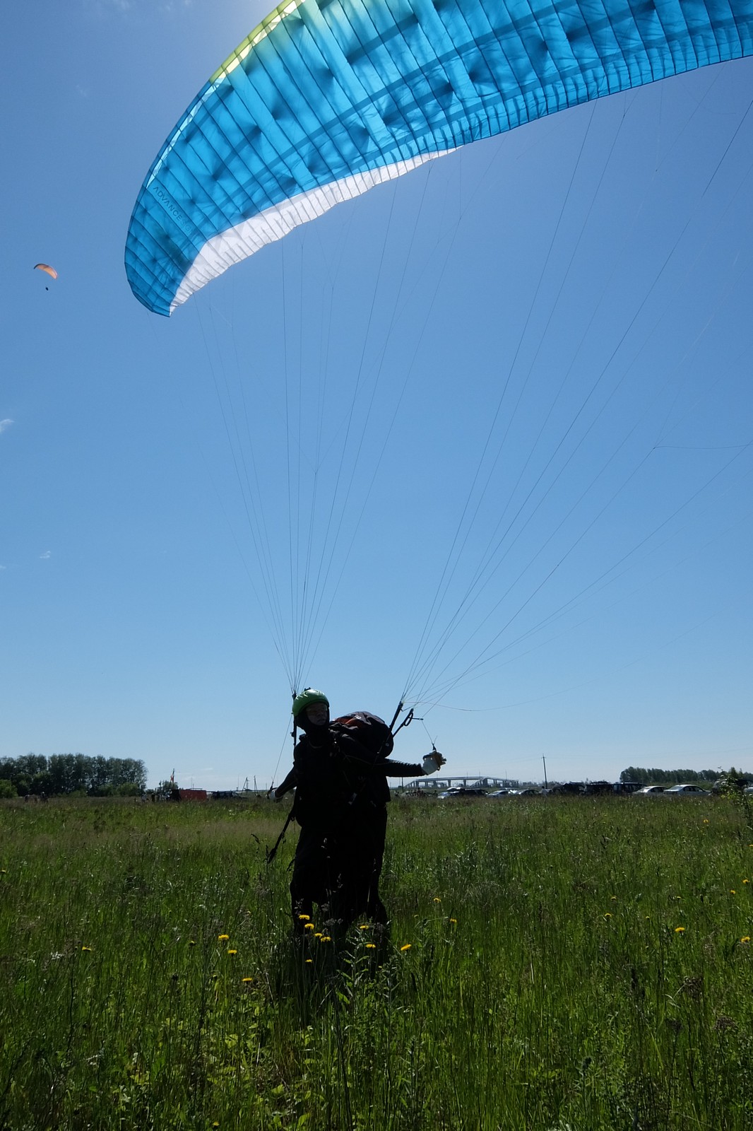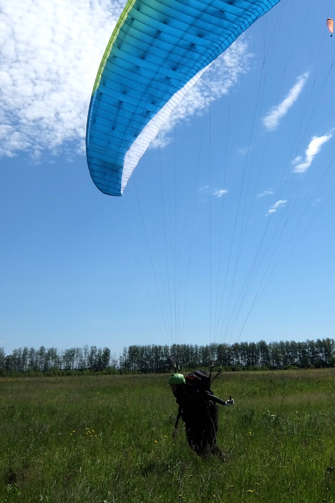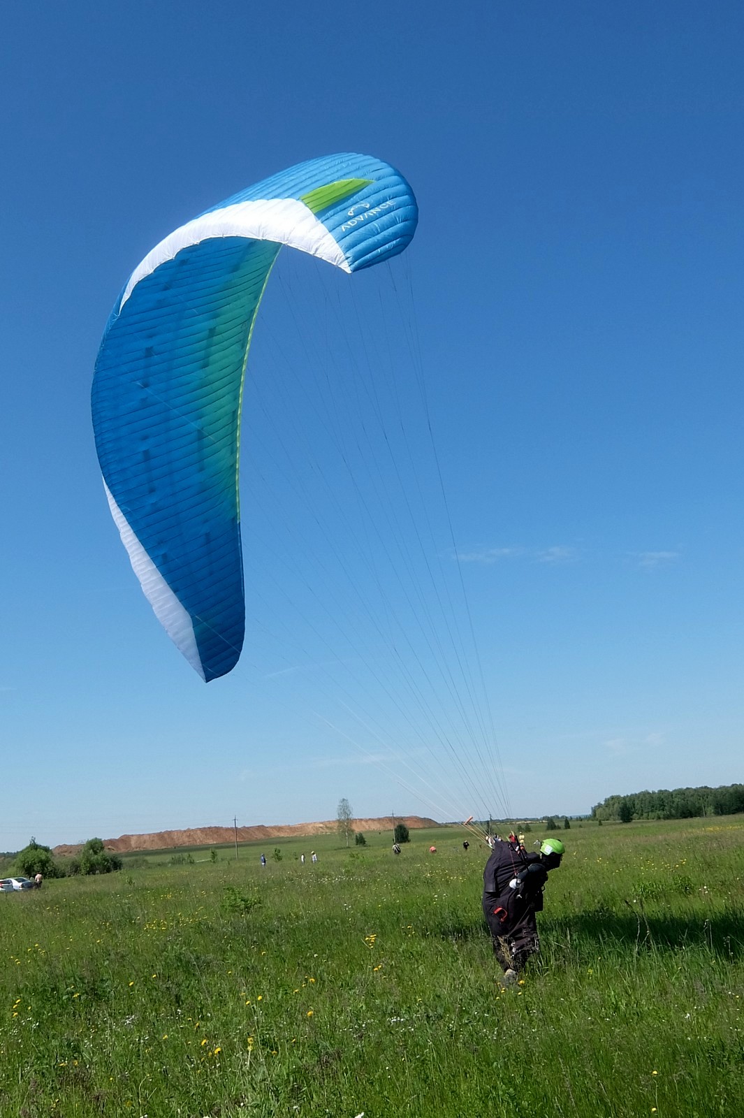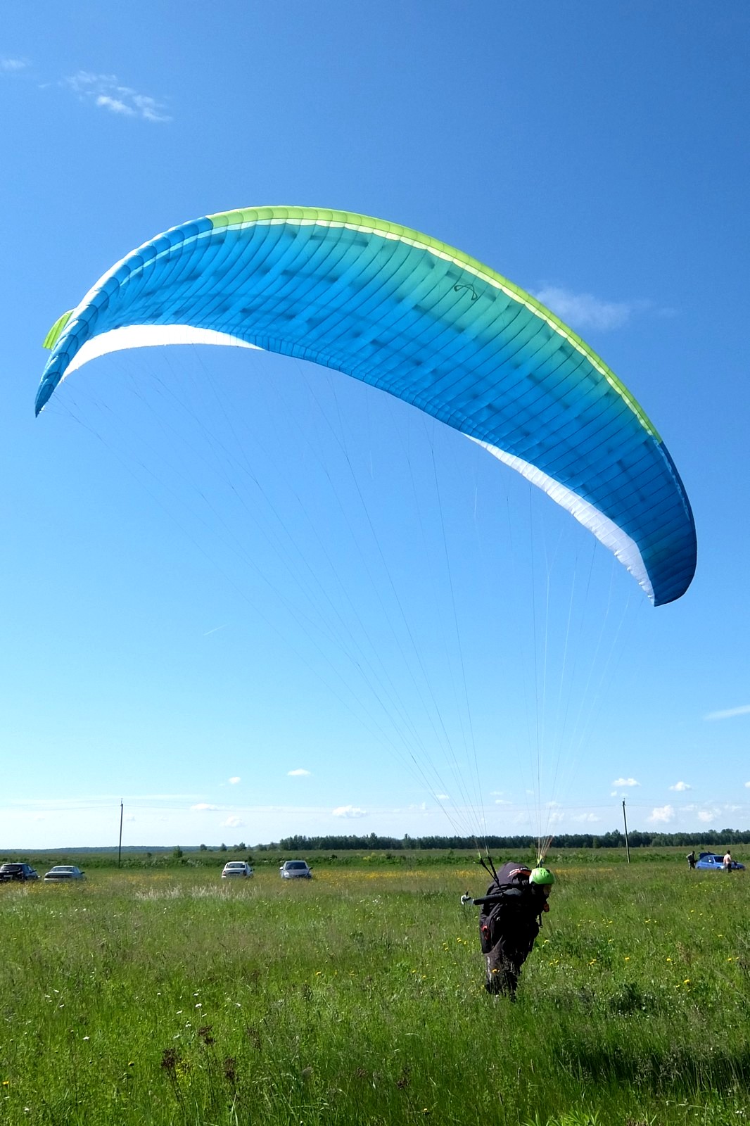И снова никаких проблем. Первая же проба Сигмы на склоне заставила меня заняться кайтингом — косой ветер не позволял выпарить с самого низа склона, пришлось практически положить аппарат «ухом» на траву, хорошенько нагрузить весом верхнюю консоль… и побежали-побежали-побежали. Как и ожидал, Сигма повела себя очень послушно и спокойно — но нижнее «ухо» всё-таки время от времени складывалось, чего за прежними Эдвансами при таких играх почти не наблюдалось.