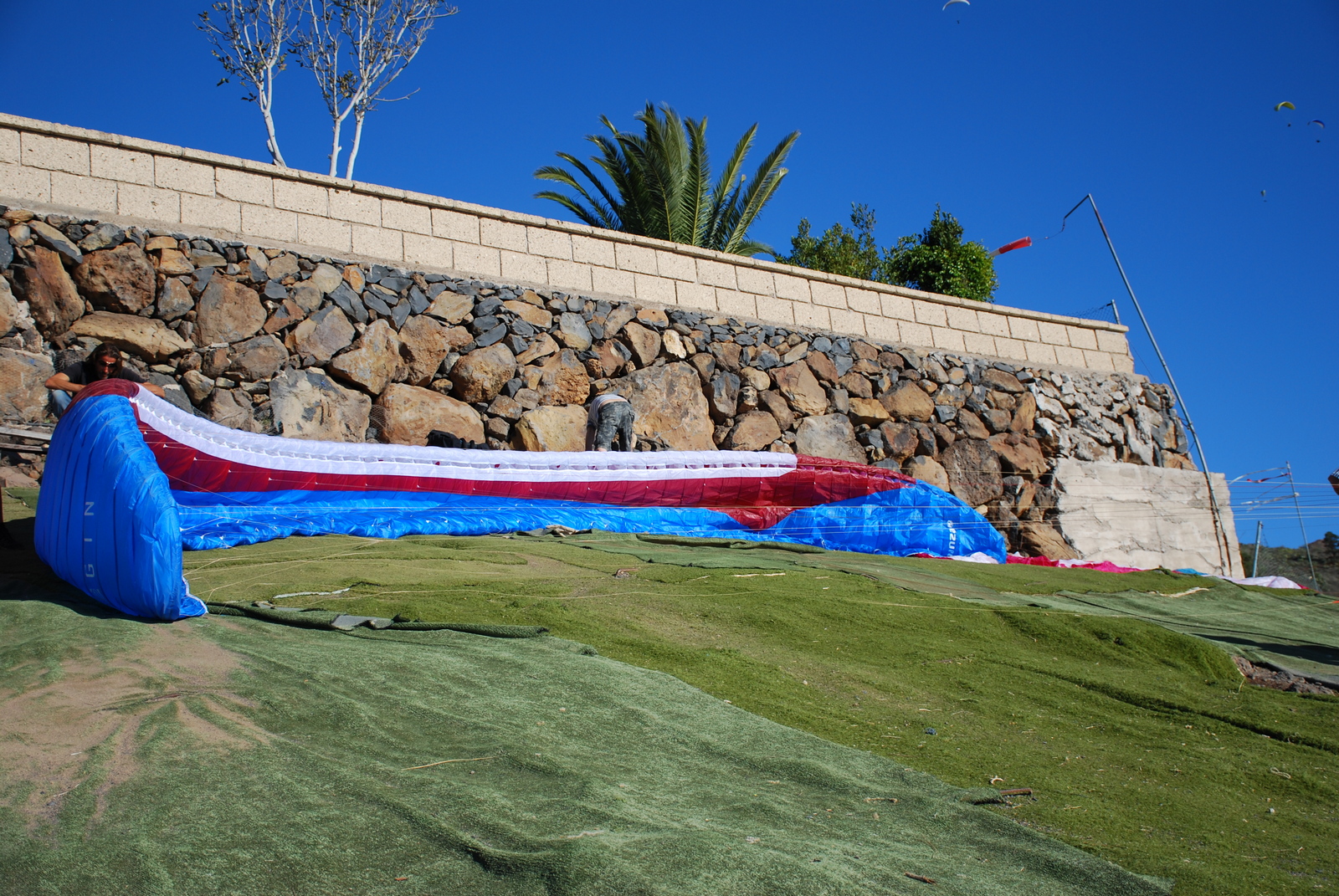 Что же, неужто обошлось совсем без недостатков? Ну ладно уж, побрюзжим слегка. Длинные лески заставляют обращаться с Бонанзой как с настоящим компетом — её приходится бережно оборачивать вокруг подвески, а дома хранить вытянутой во всю хорду. При таком сочетании спокойного характера и летучести Бонанза могла бы претендовать на звание отличного крыла для всяких горных авантюр (что, кстати, блестяще подтвердилось в горной Грузии) — но для «горно-приключенческого» крыла Бонанза весит многовато. «Похудеть» бы ей до уровня того же Gin Explorer — и найти конкурентов такой «Бонанзе Лайт» будет практически нереально. По слухам, Джин уже полным ходом ведёт работу над таким крылом — только тссс, я об этом никому не говорил! В обычном же, необлегчённом варианте Бонанза — отличное оружие для борьбы за призовые места в спорт-классе, где никто особо не переживает по поводу массы крыла. Единственным сильным соперником Бонанзе в условиях соревновательной гонки «цешек» мне видится разве что 777 Queen2, который летит в целом несколько получше, но сильно более злобен в опасных режимах. И, наконец, где же ручки на задних рядах, мистер Джин? Да, знаю, что у некоторых Бонанз они есть — но почему не у всех?..