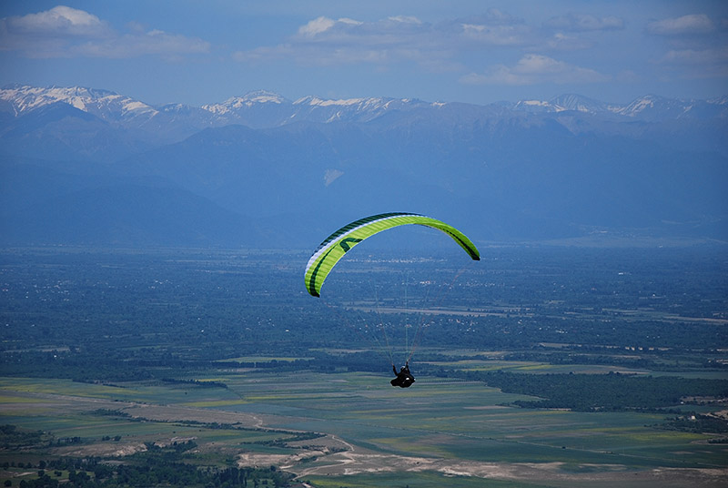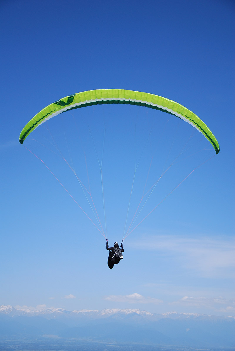 Летучесть. Впечатляет! Пожалуй, Чили3 — это серьёзная заявка на лидерство в классе EN B по критерию «летучесть-комфорт». Да и сама по себе летучесть этого крыла достойная всяческой похвалы. Давно не встречал в классе EN B столь эффективного акселератора. Он достаточно лёгкий, но уже на первой ступени прирост скорости составляет около 10 кмч — цифра, типичная скорее для какого-нибудь «перформанса». Причём пользоваться таким режимом полёта можно активно и даже нагло — спокойный характер допытного и его высокая стойкость к сложениям позволяют не сбрасывать ногу с педали даже в достаточно серьёзную болтанку. Чили прекрасно ведёт себя и в потоках: крутить можно плотно, узко, на достаточно высокой скорости, не опасаясь за скорость снижения.