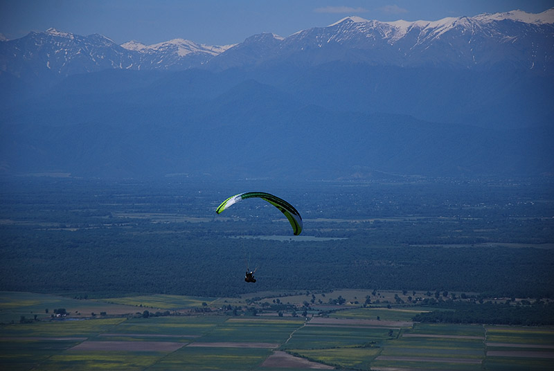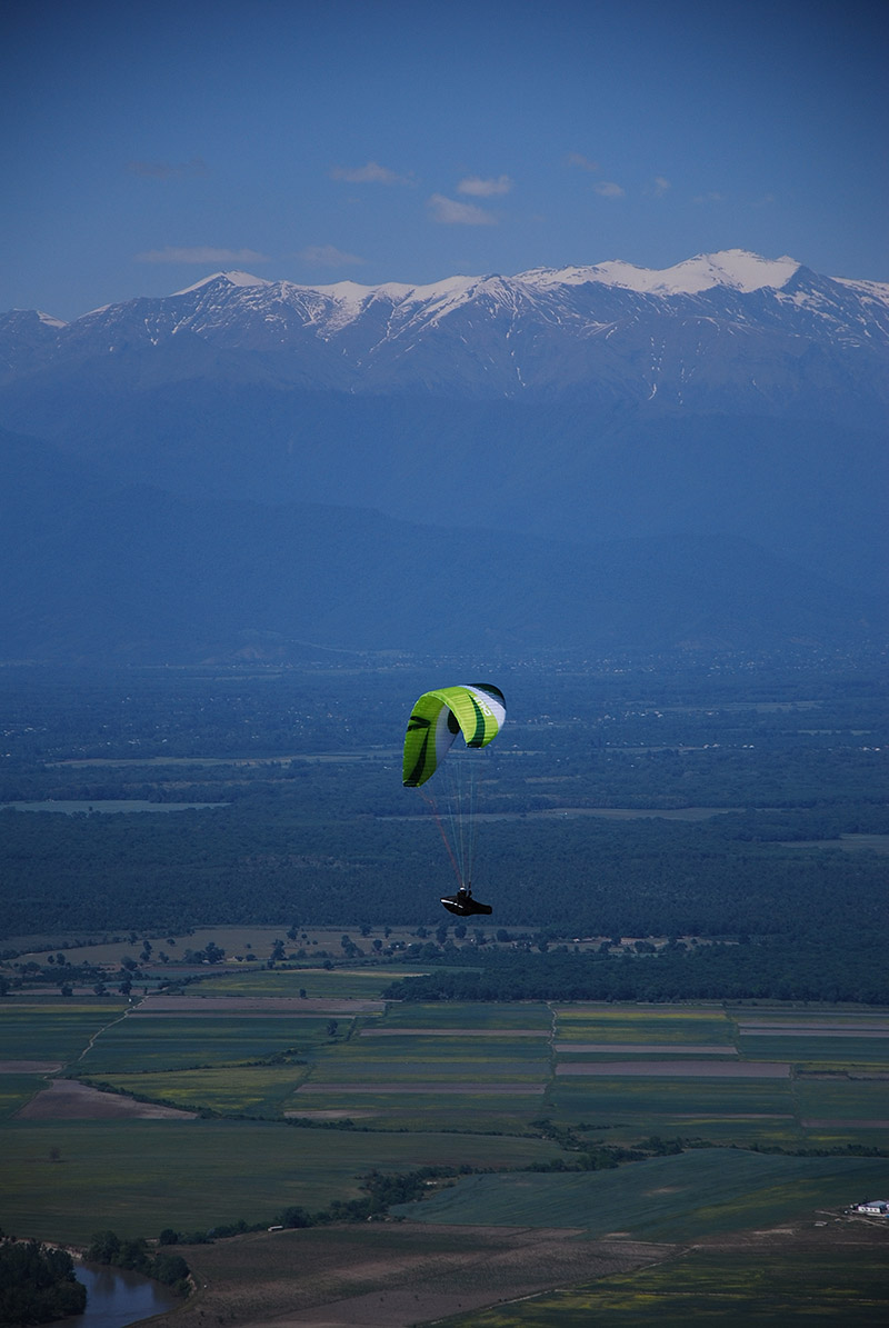 Комфорт, информативность. От аппарата, утыканного длинными лесками, я ожидал существенно более коварного и неоднозначного поведения. К счастью, ошибался. Похоже, конструктору Чили удалось совместить в одном и том же аппарате летучесть крыла с лесками и вменяемое, комфортное и предсказуемое поведение типичного «послешкольного» крыла. За несколько часов маршрутных полётов Чили заметно дёргался над головой всего пару раз. В основном же Чили «проглатывает» турбулентность, передавая на свободные концы и подвеску именно информацию, а не хаотические рывки и пинки. Для аппарата класса EN B информативность у Чили чуть выше среднего — та самая приятная острота, вынесенная в заголовок тест-драйва. Лишнего аппарат не передаёт, но то, что передаёт, доводит до пилота чётко, ясно и быстро. Для интермедиата с маршрутными амбициями — в самый раз!